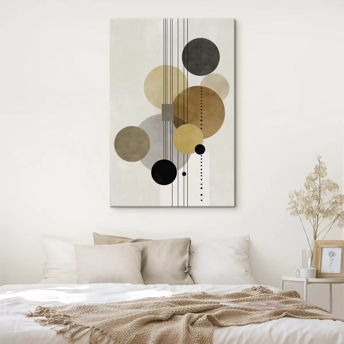 Obraz abstraktné dielo s kruhmi a čiarami v teplých farbách Nr. s47238