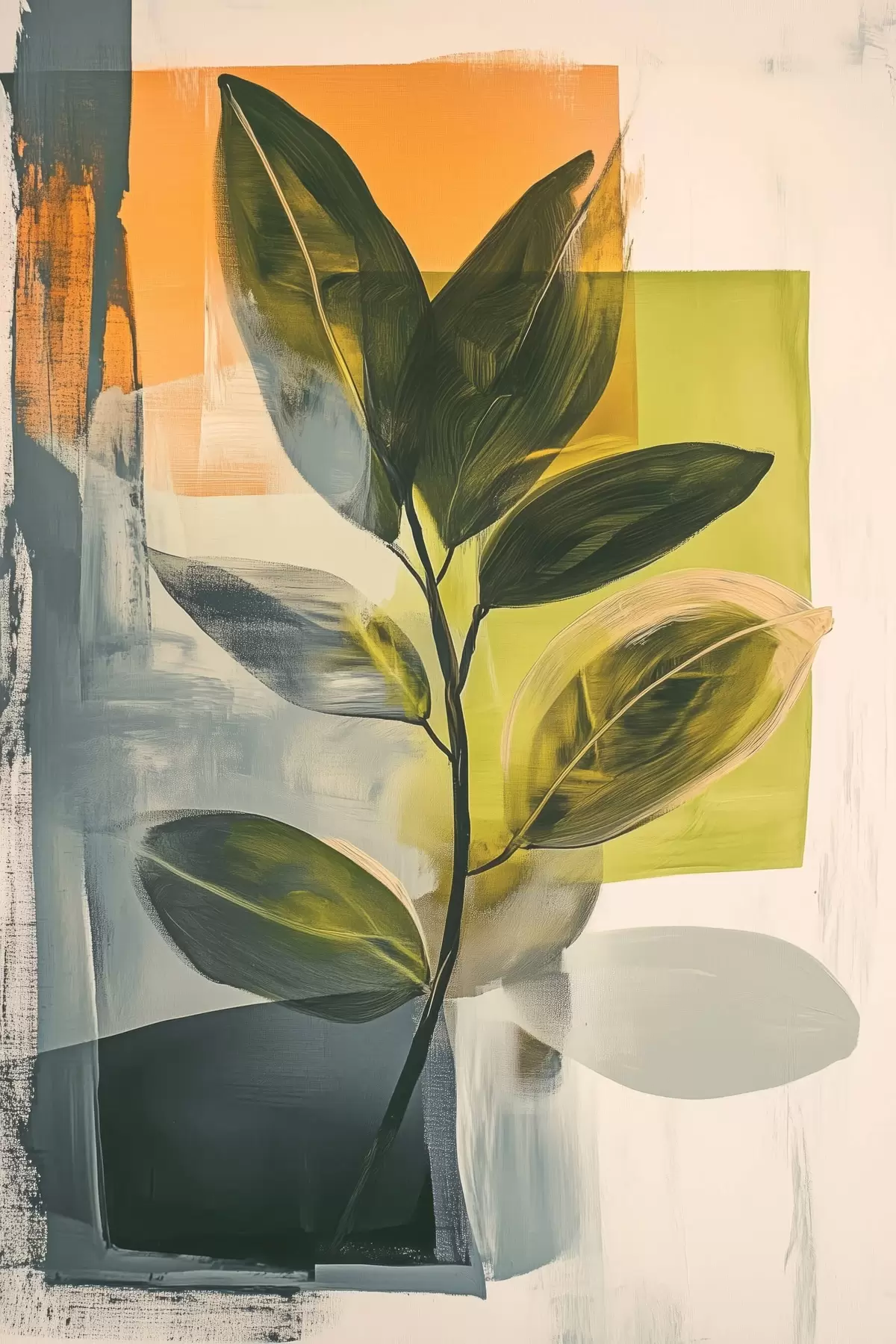 Obraz Vetva s listami na abstraktnom pozadí Nr. s47249