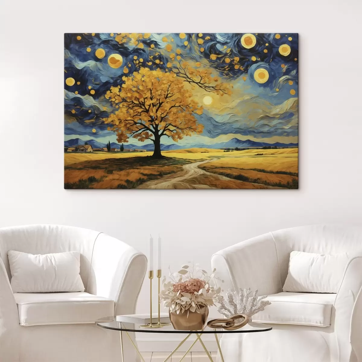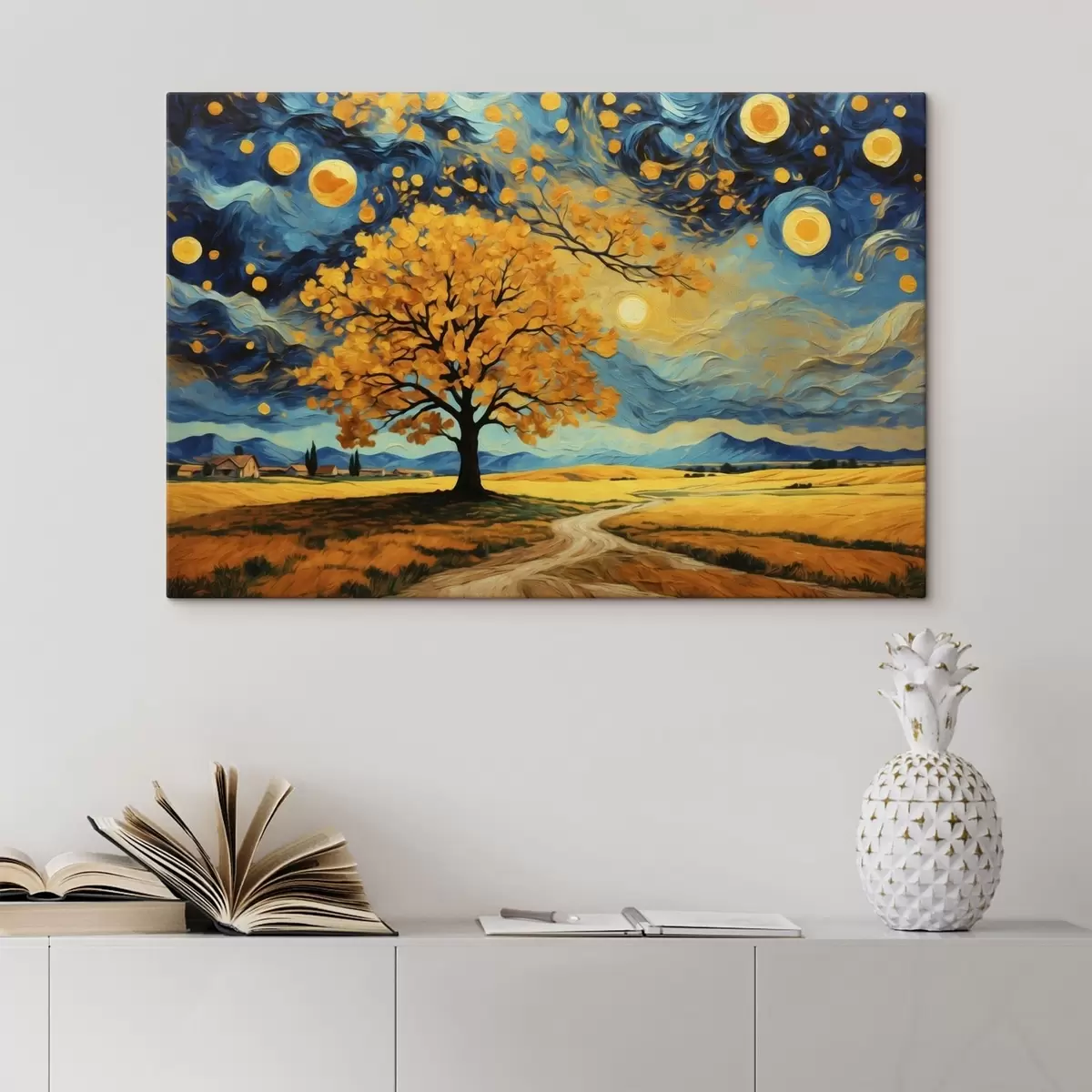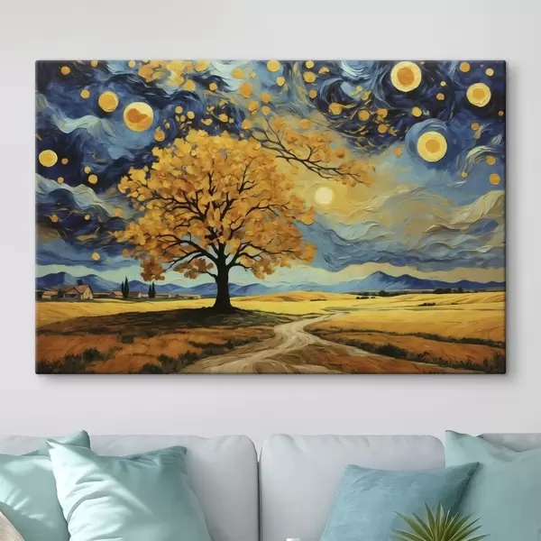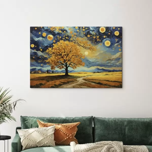 Obraz Krajina so stromom a jasnou hviezdnou oblohou Nr. s47255