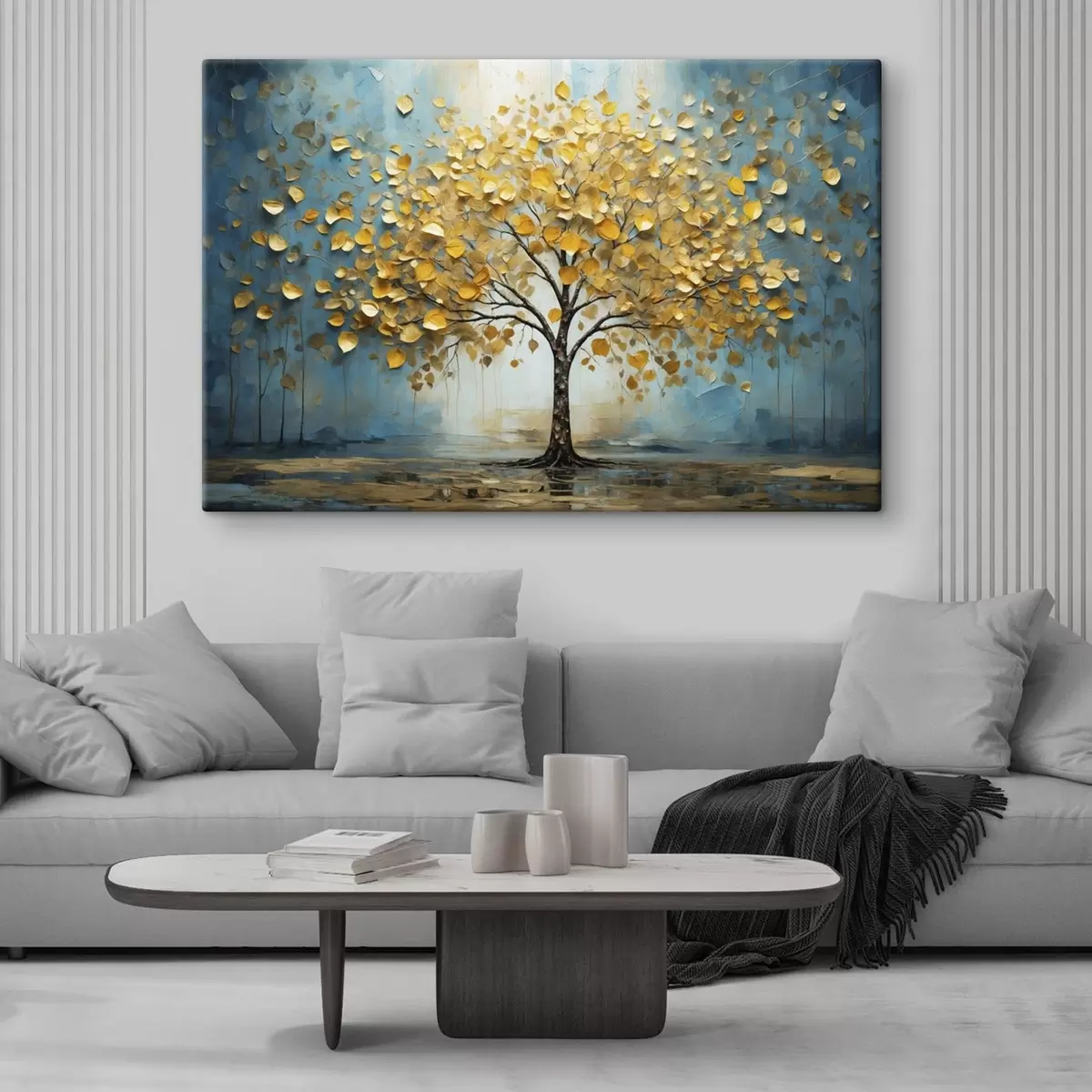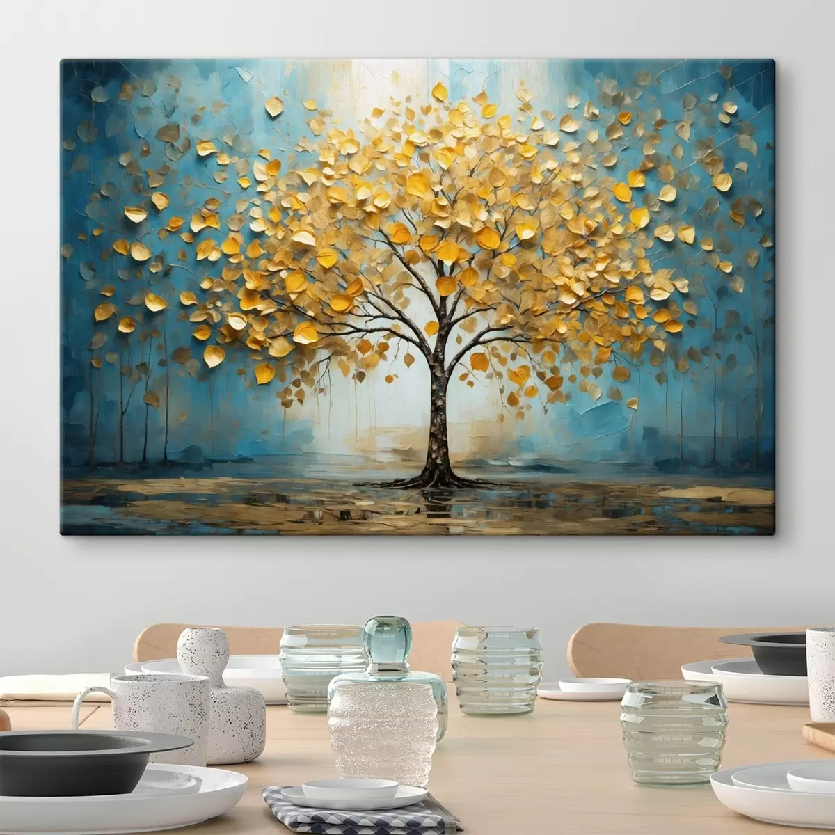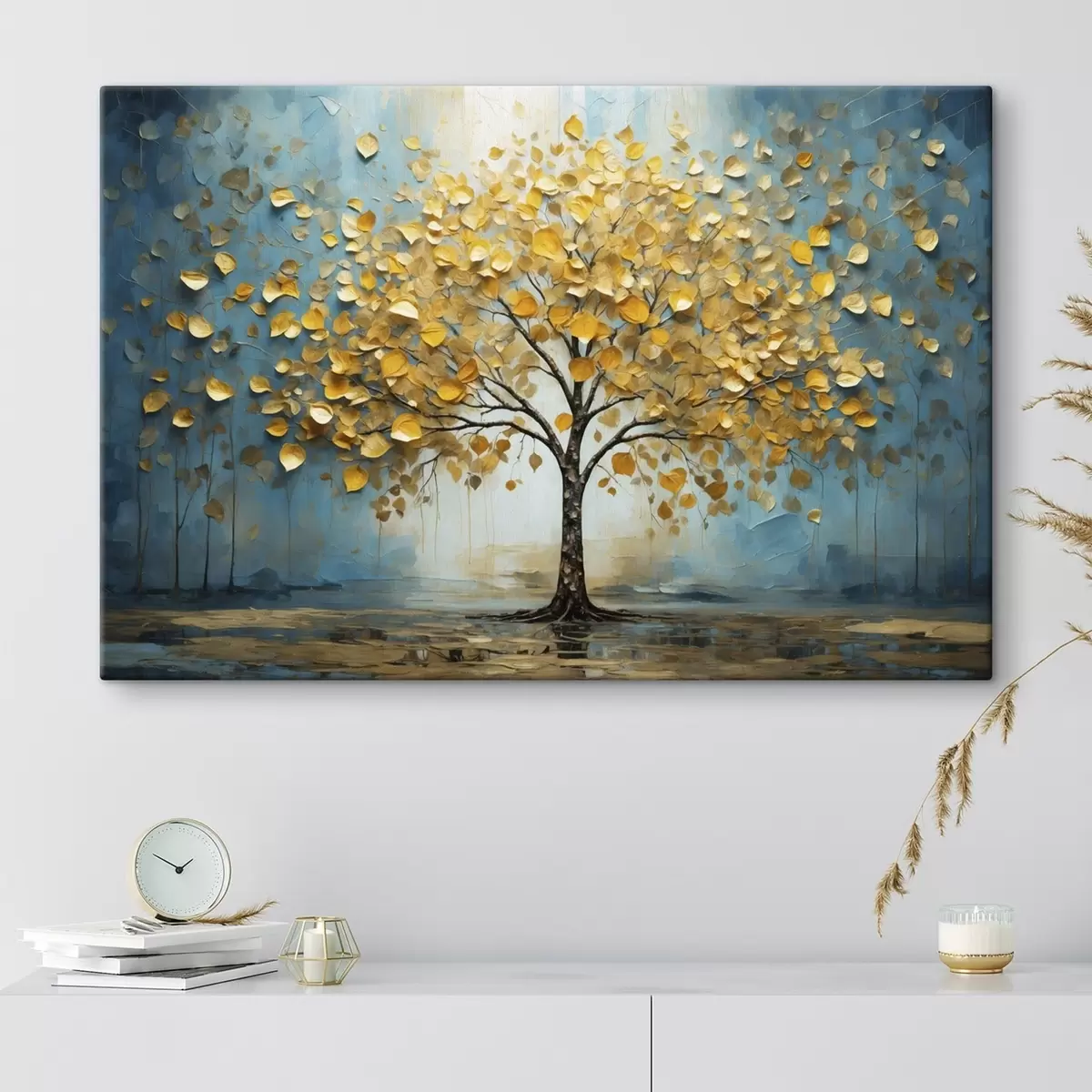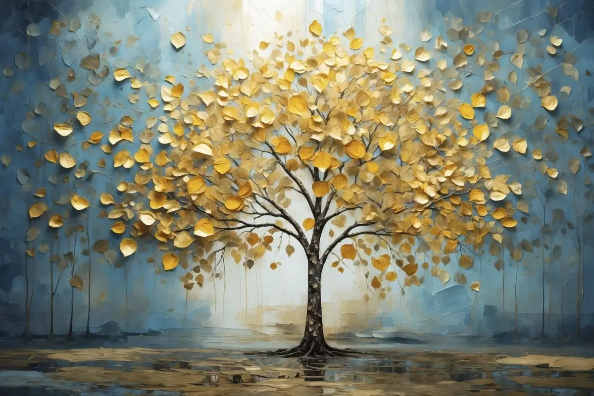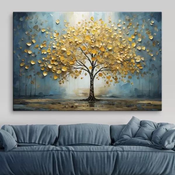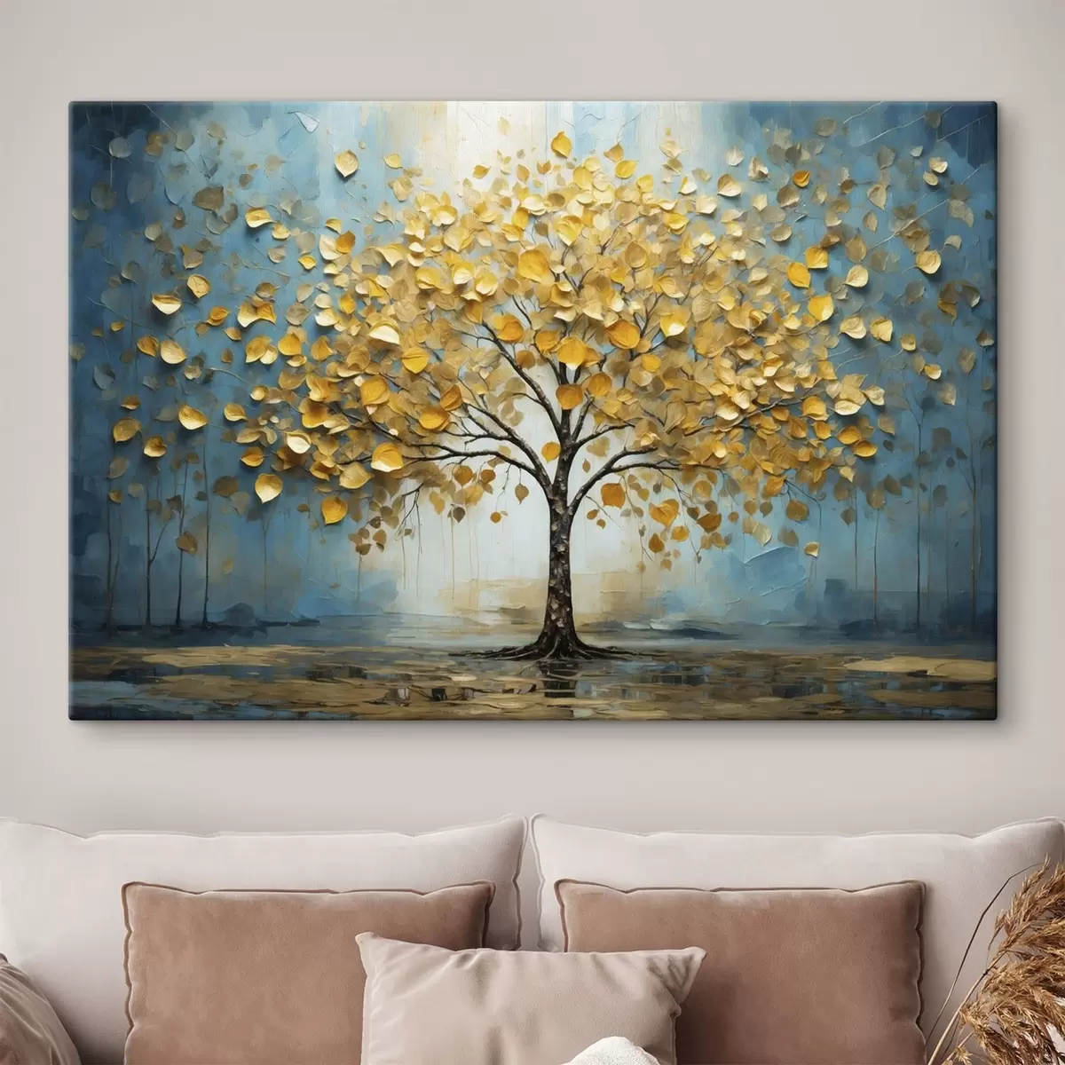 Obraz Strom so žltými listami na pozadí modrých tónov Nr. s47256