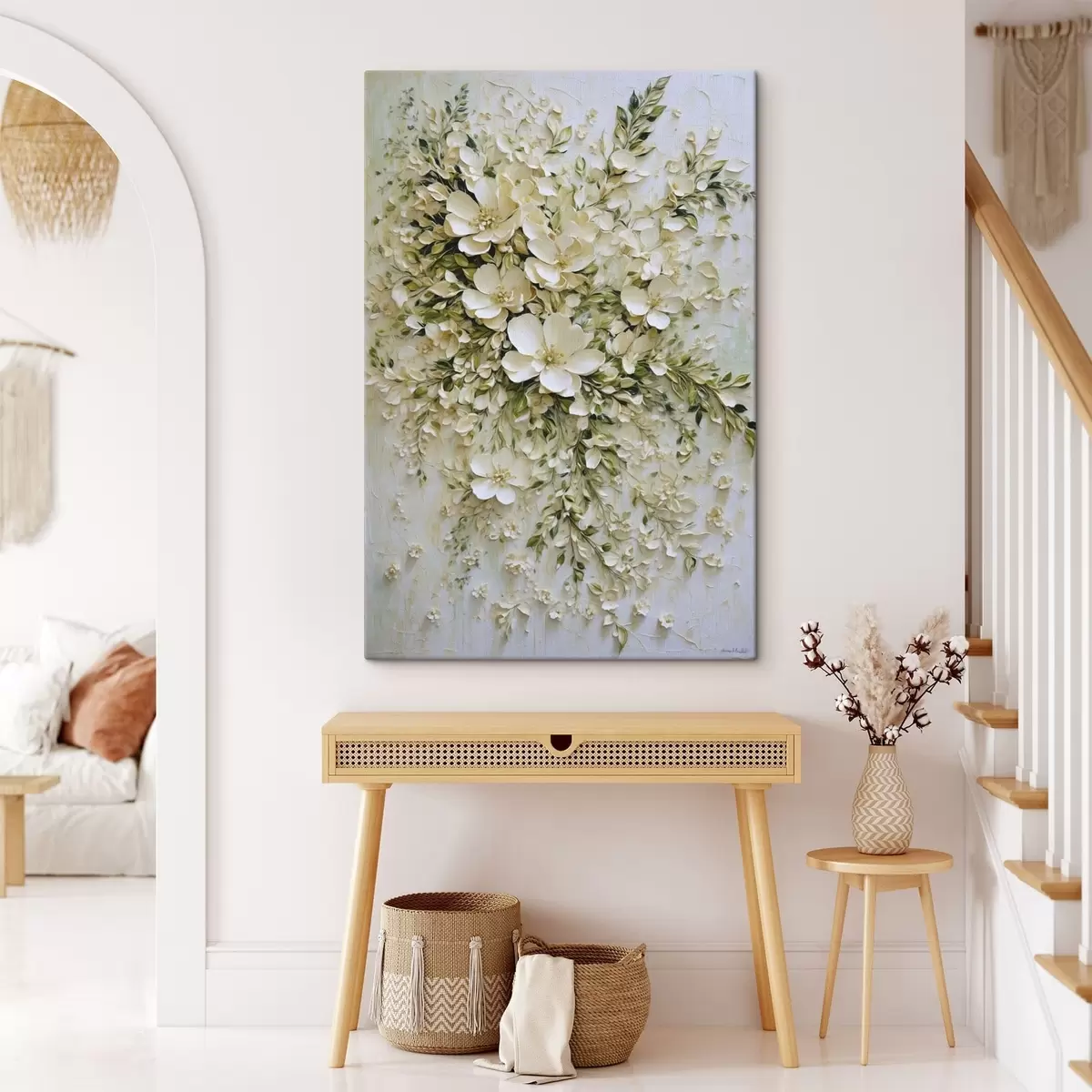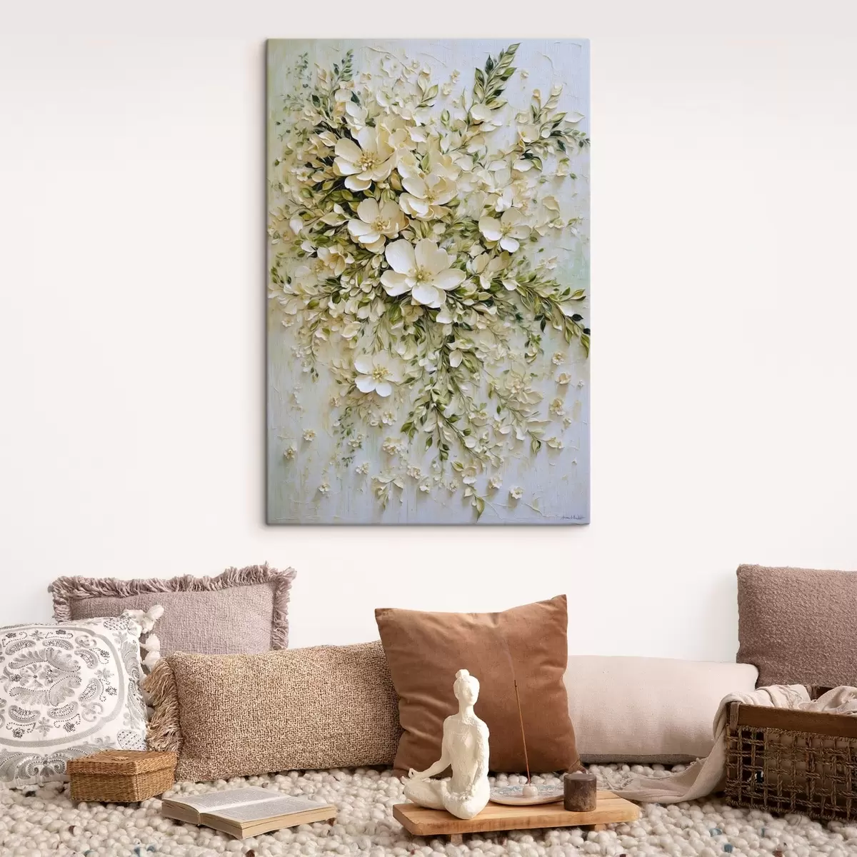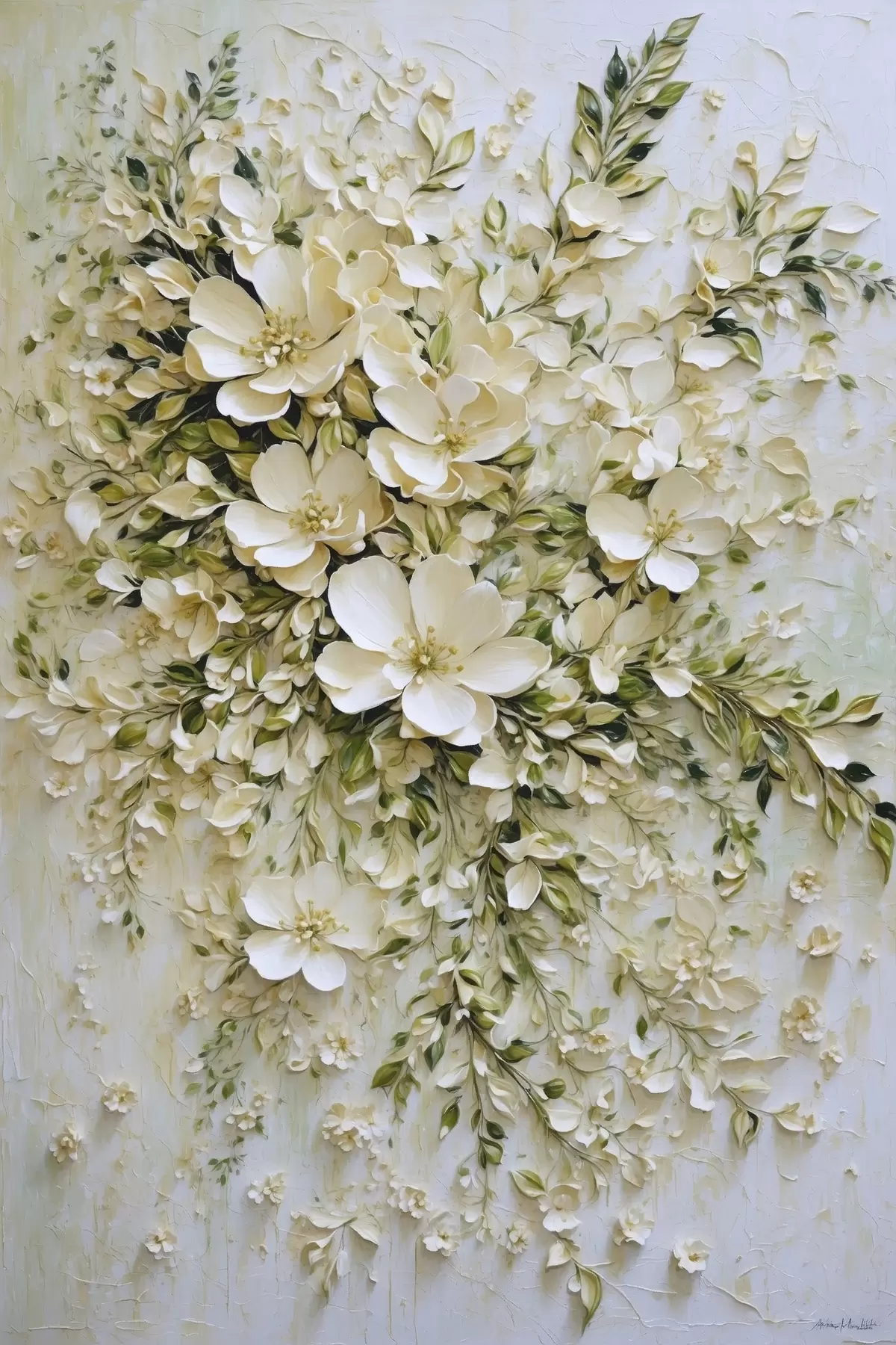 Obraz Veľká kompozícia krémových kvetov a listov Nr. s47267