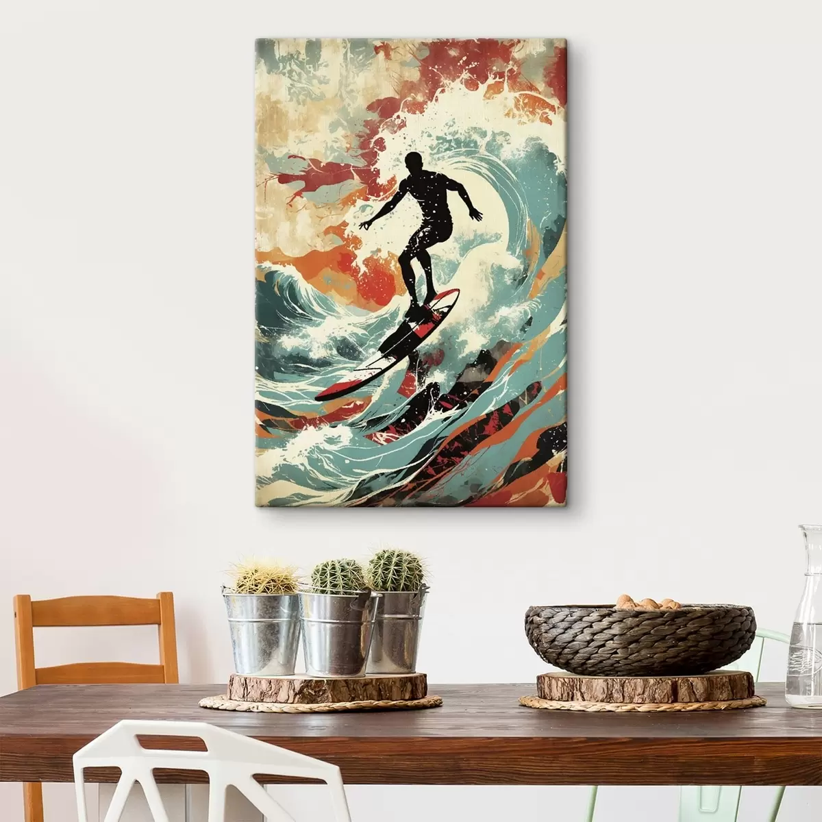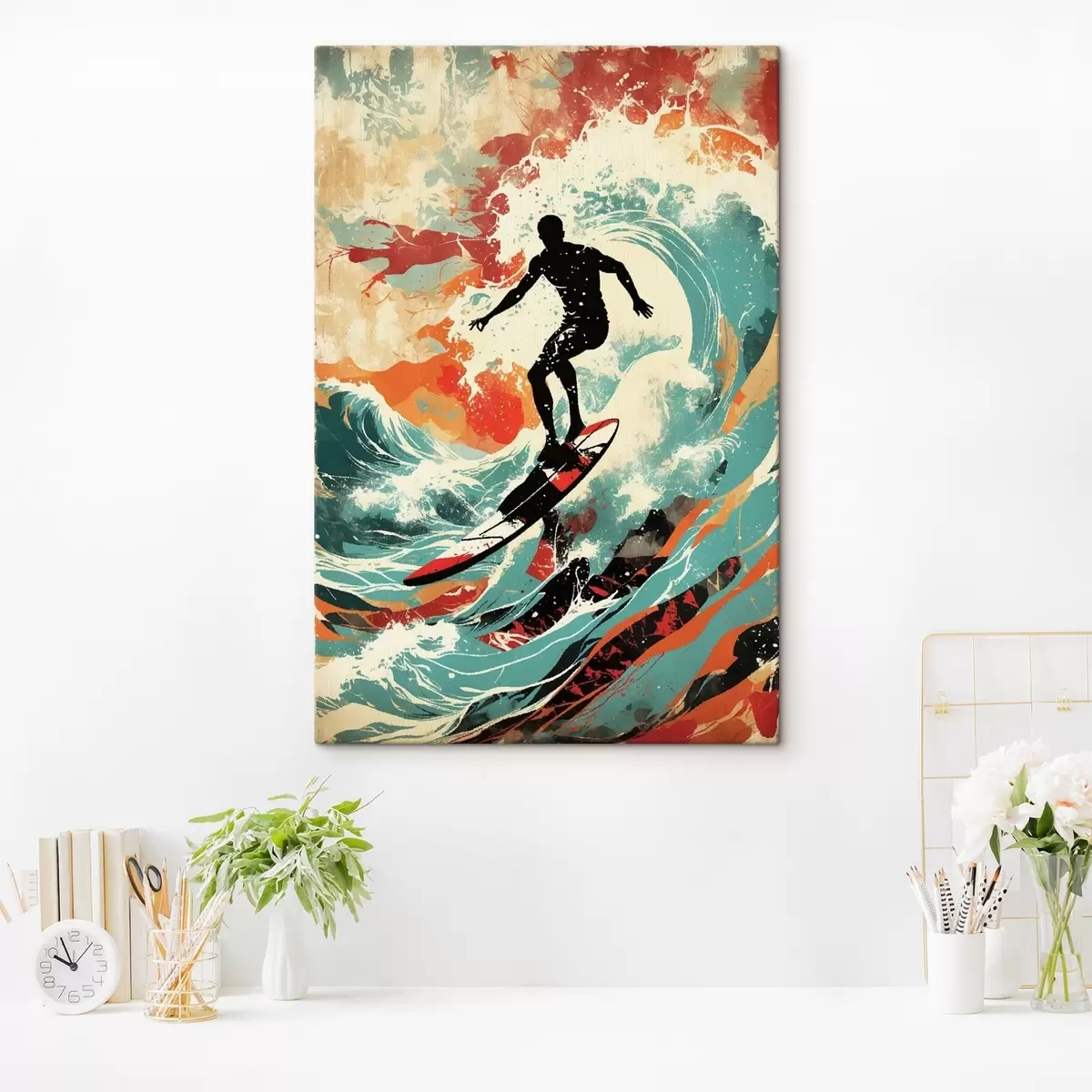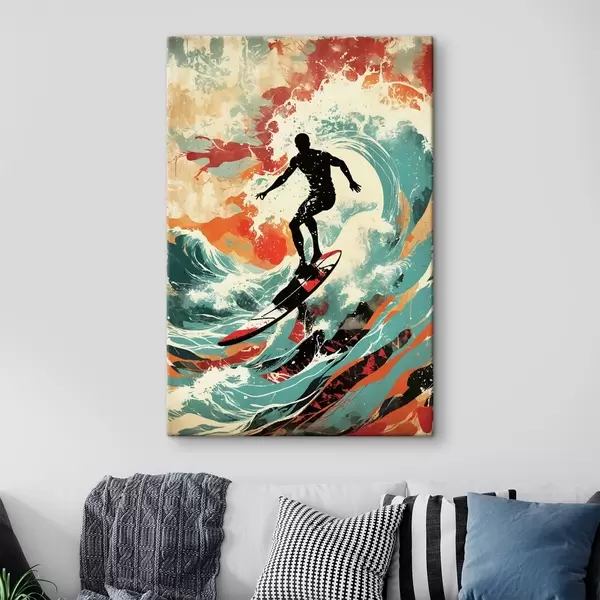 Obraz Silueta surfera na vlnách v živých farbách Nr. s47284