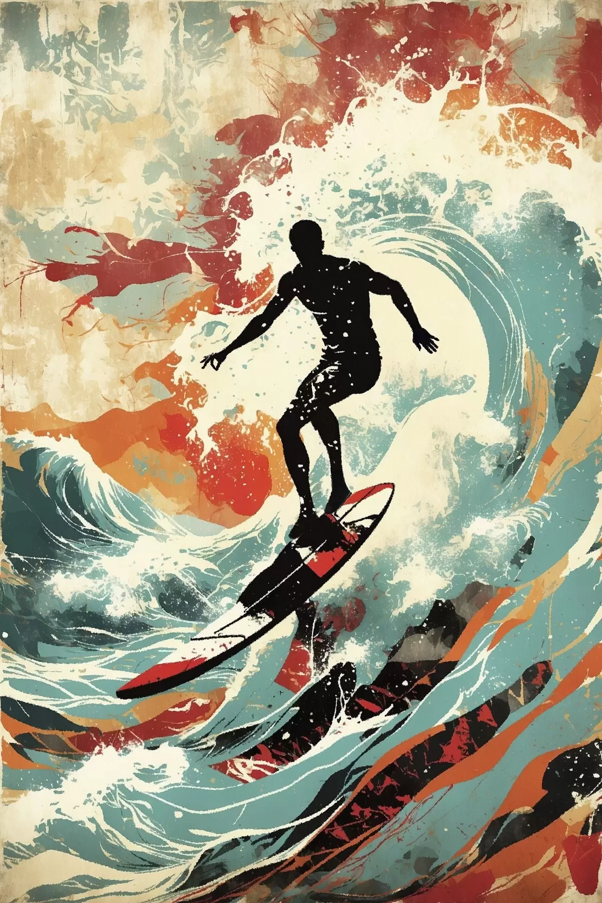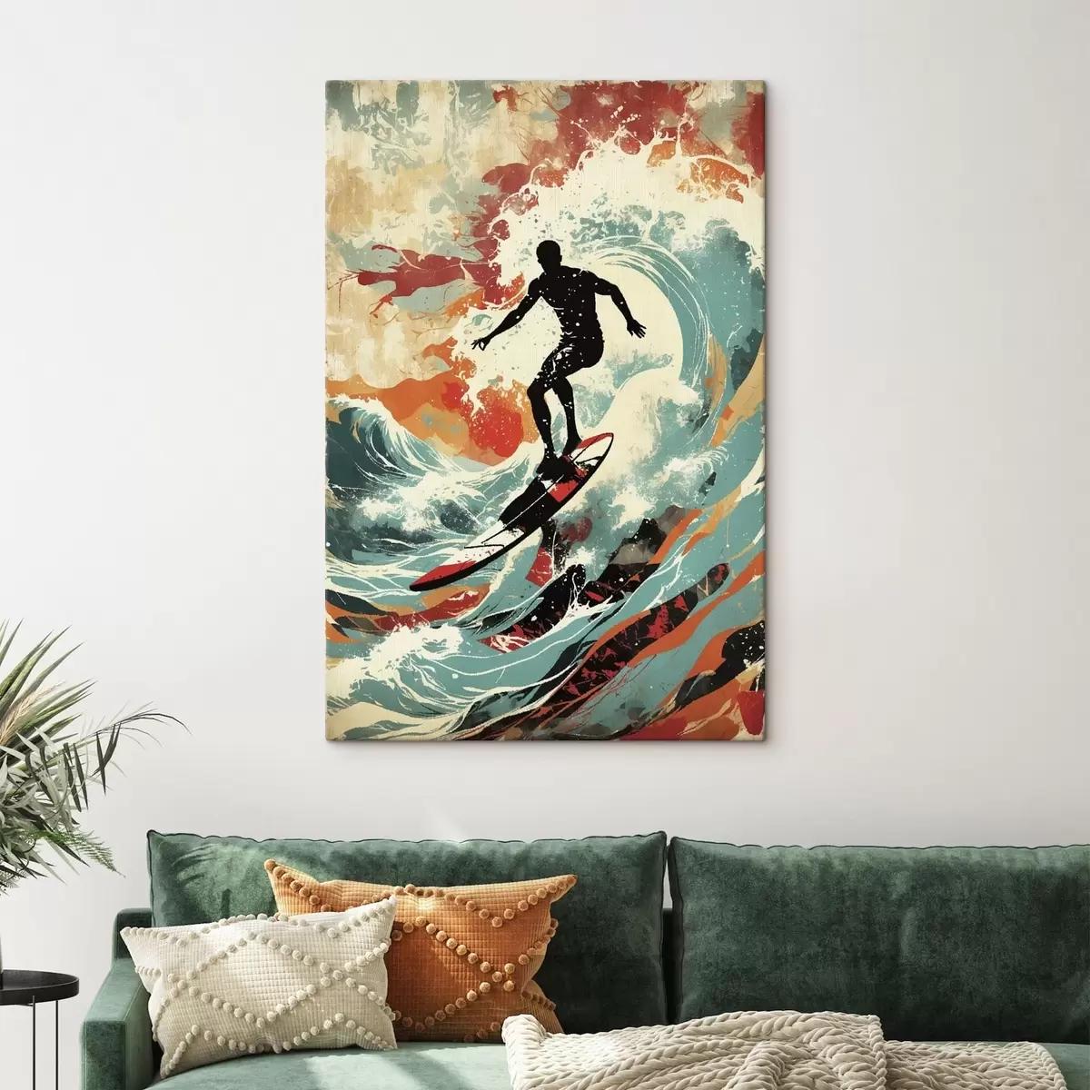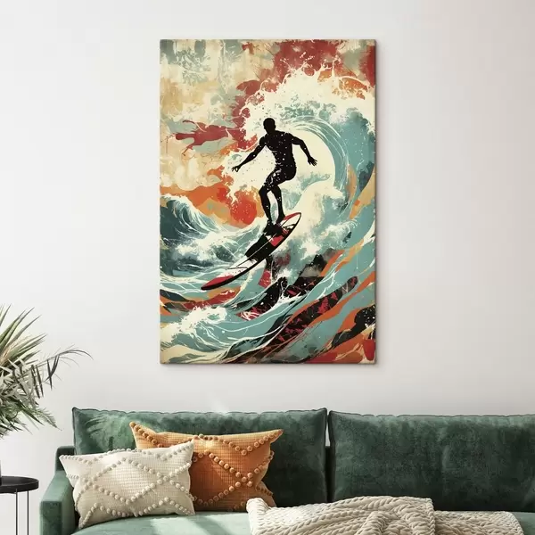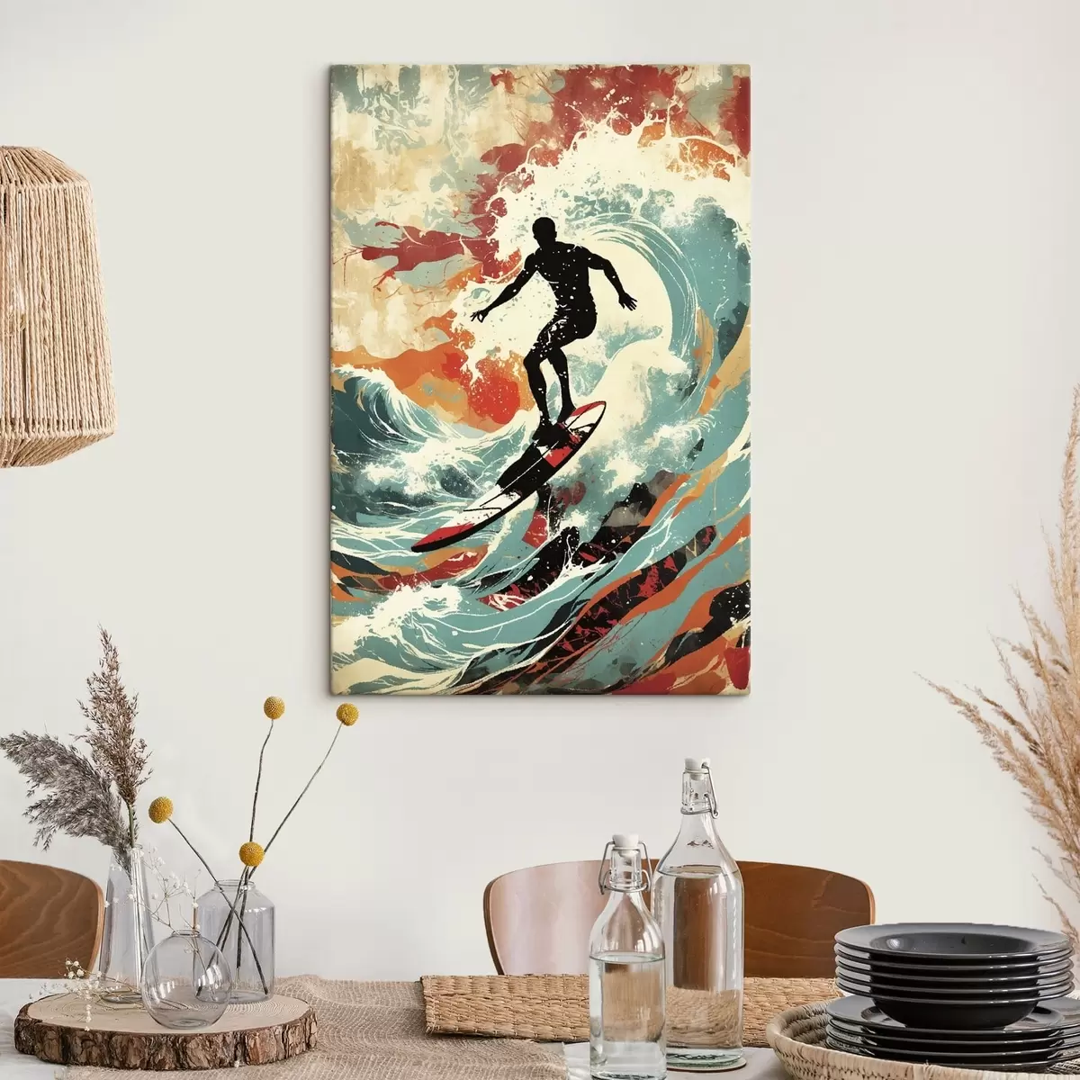 Obraz Silueta surfera na vlnách v živých farbách Nr. s47284