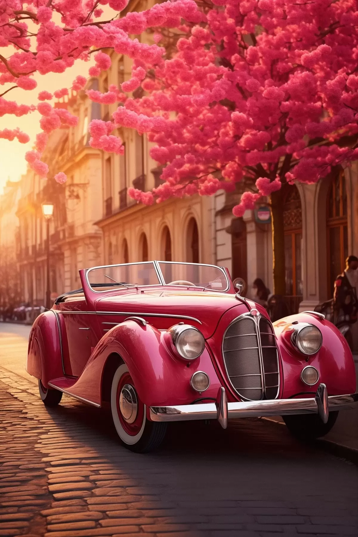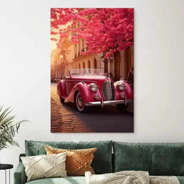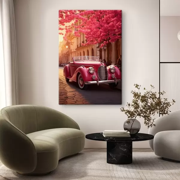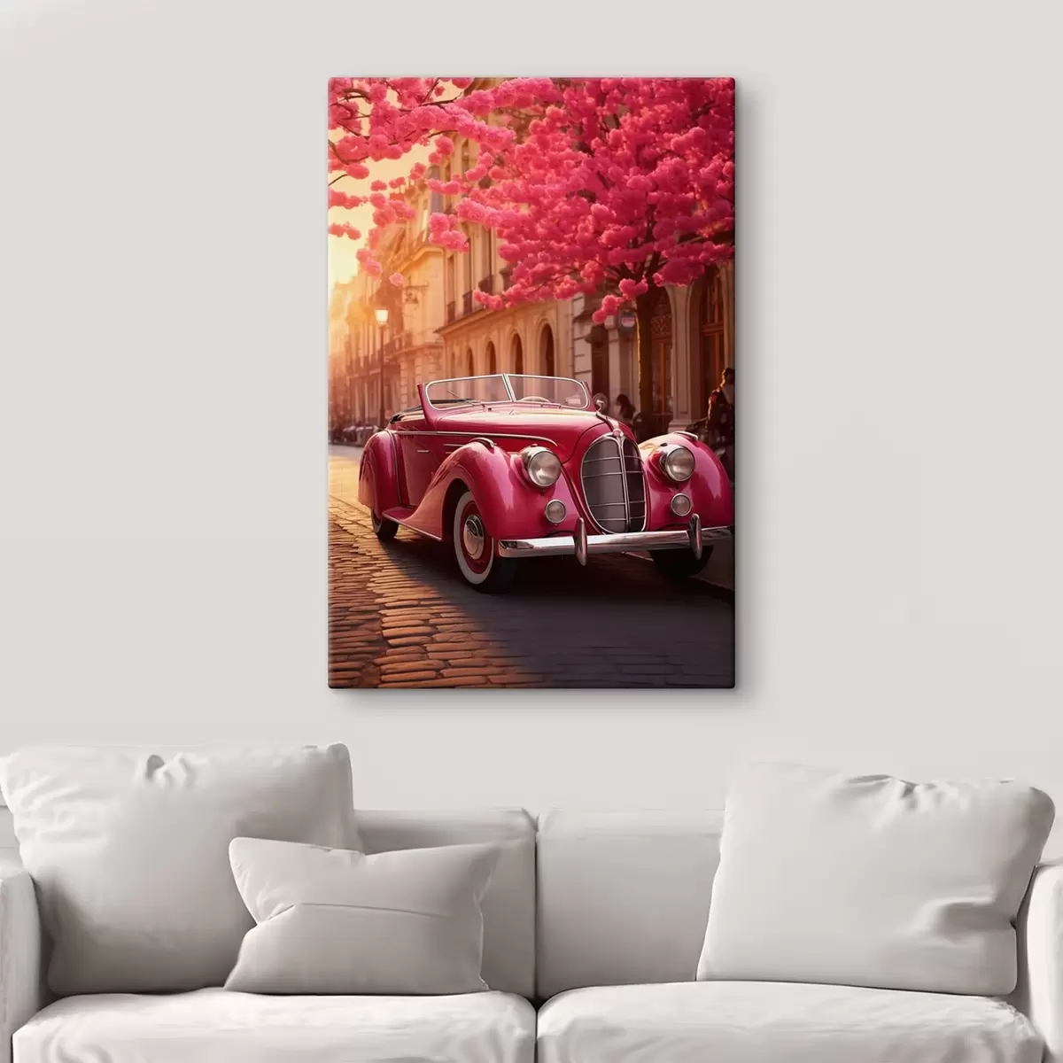 Obraz Ružové auto pod kvitnúcimi stromami Nr. s47295