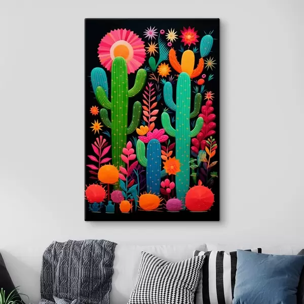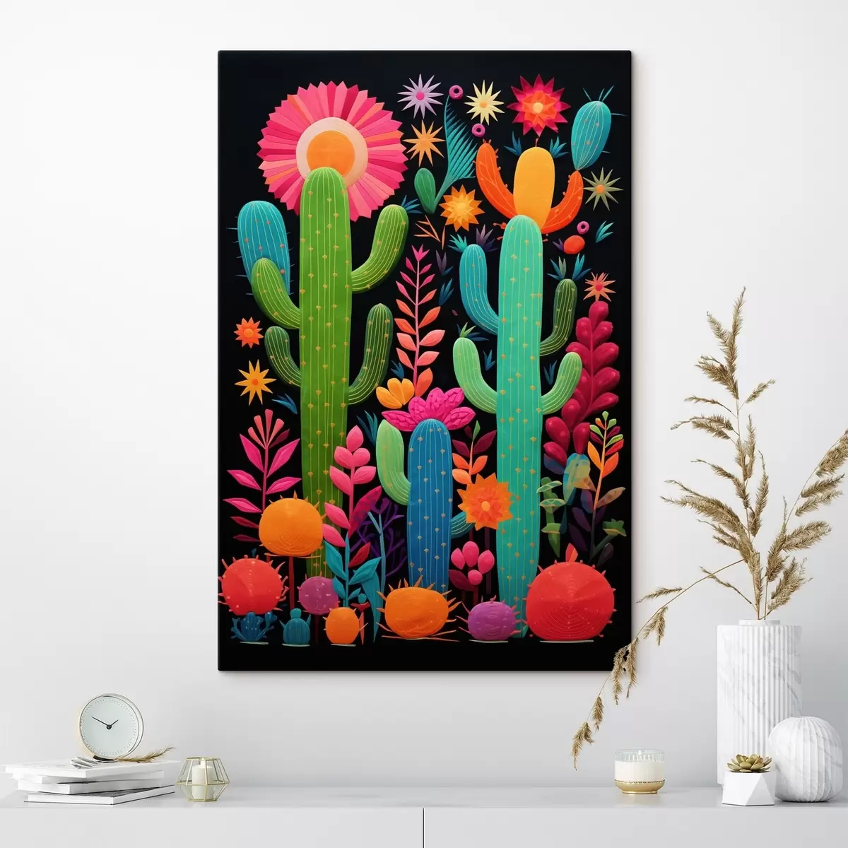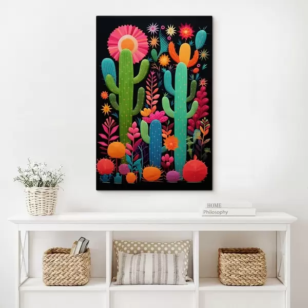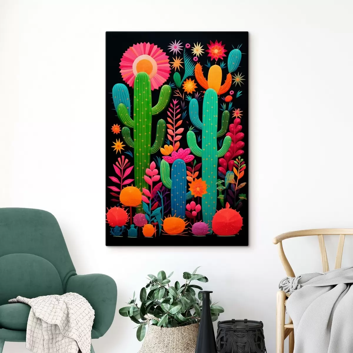 Obraz Živé kaktusy a kvety na tmavom pozadí Nr. s47297