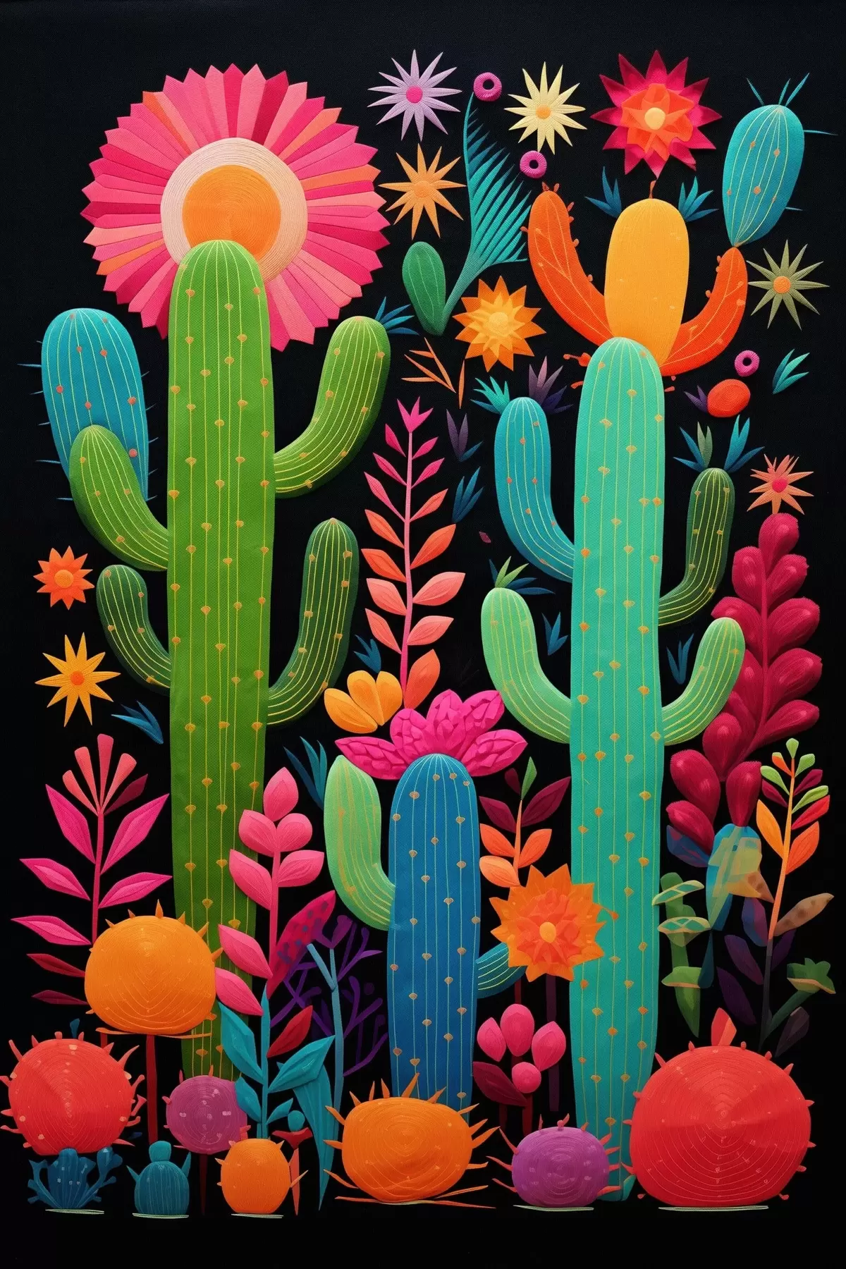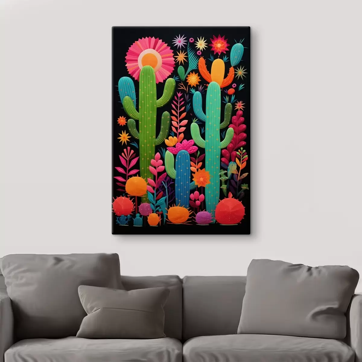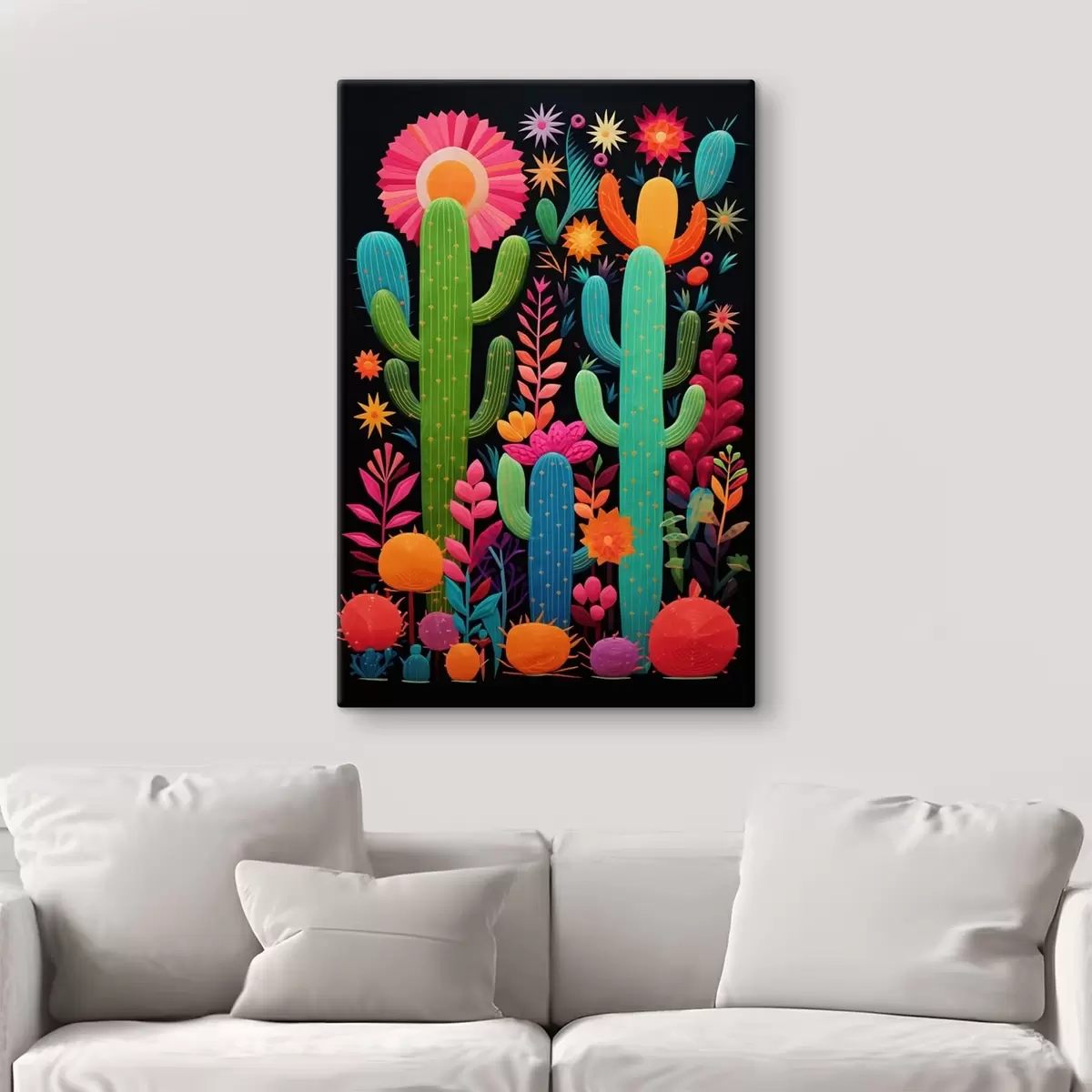 Obraz Živé kaktusy a kvety na tmavom pozadí Nr. s47297