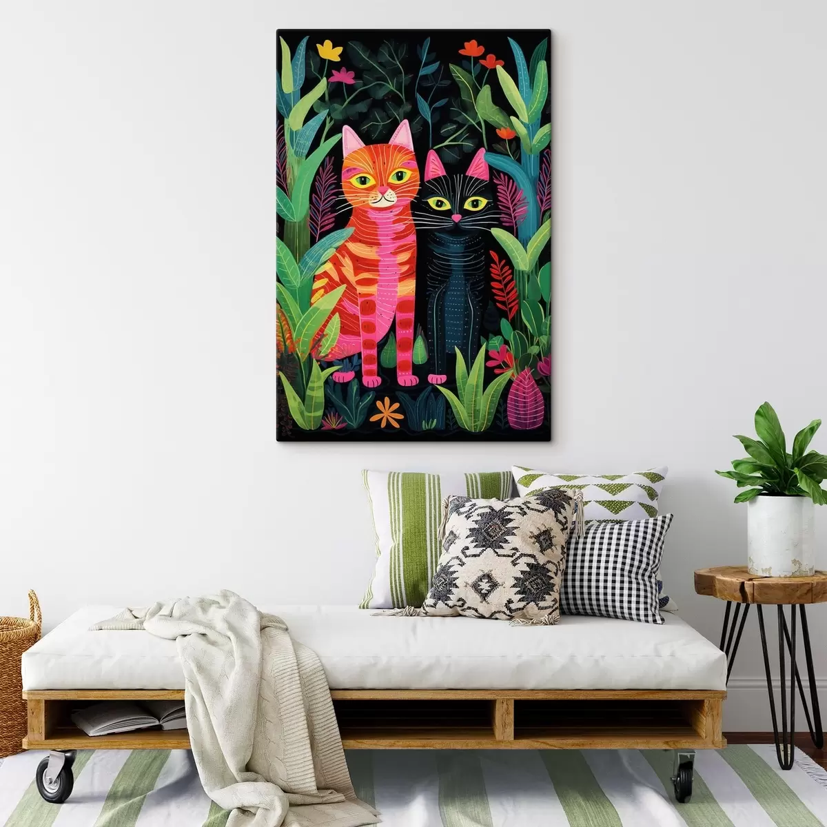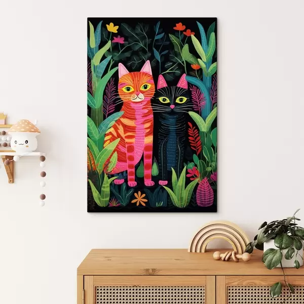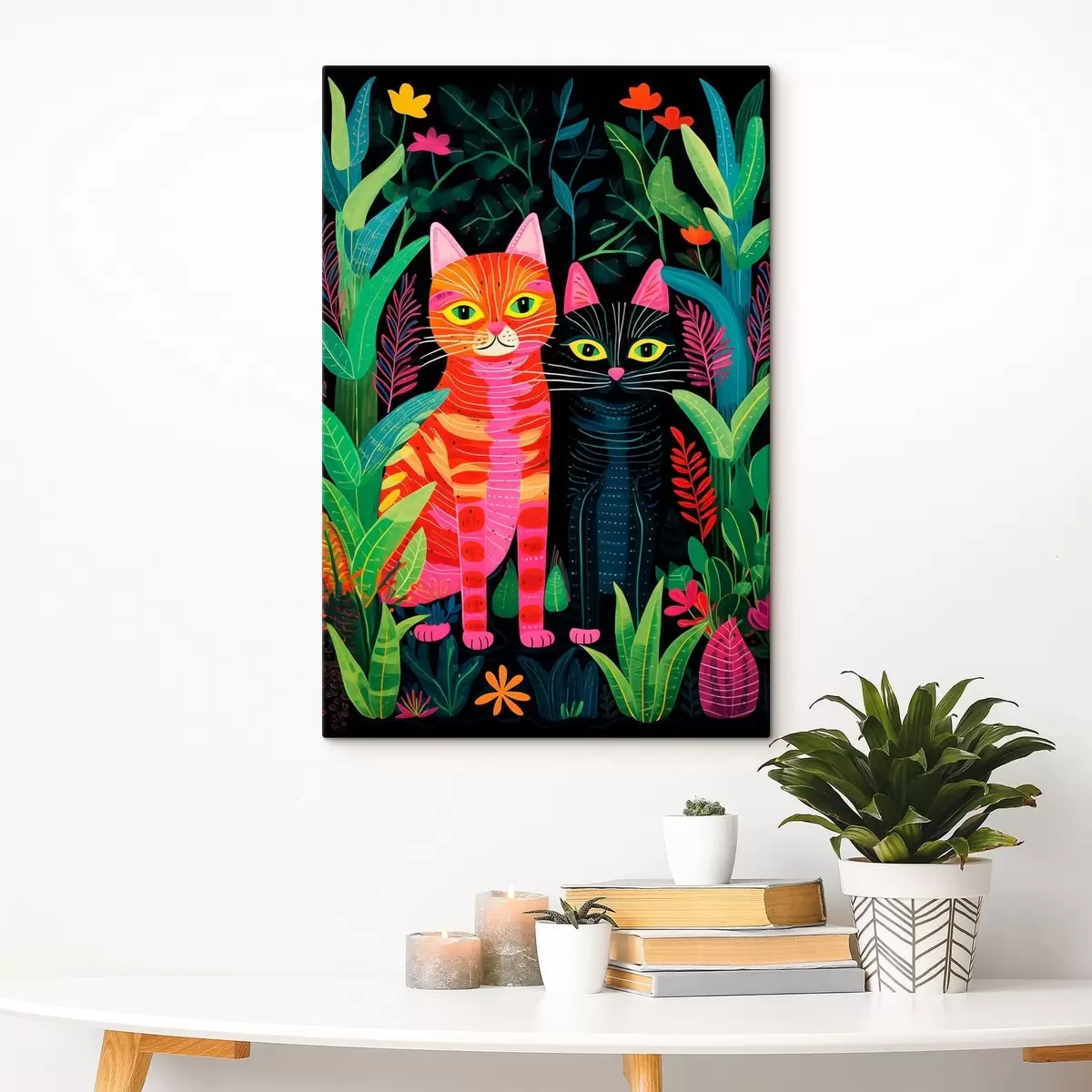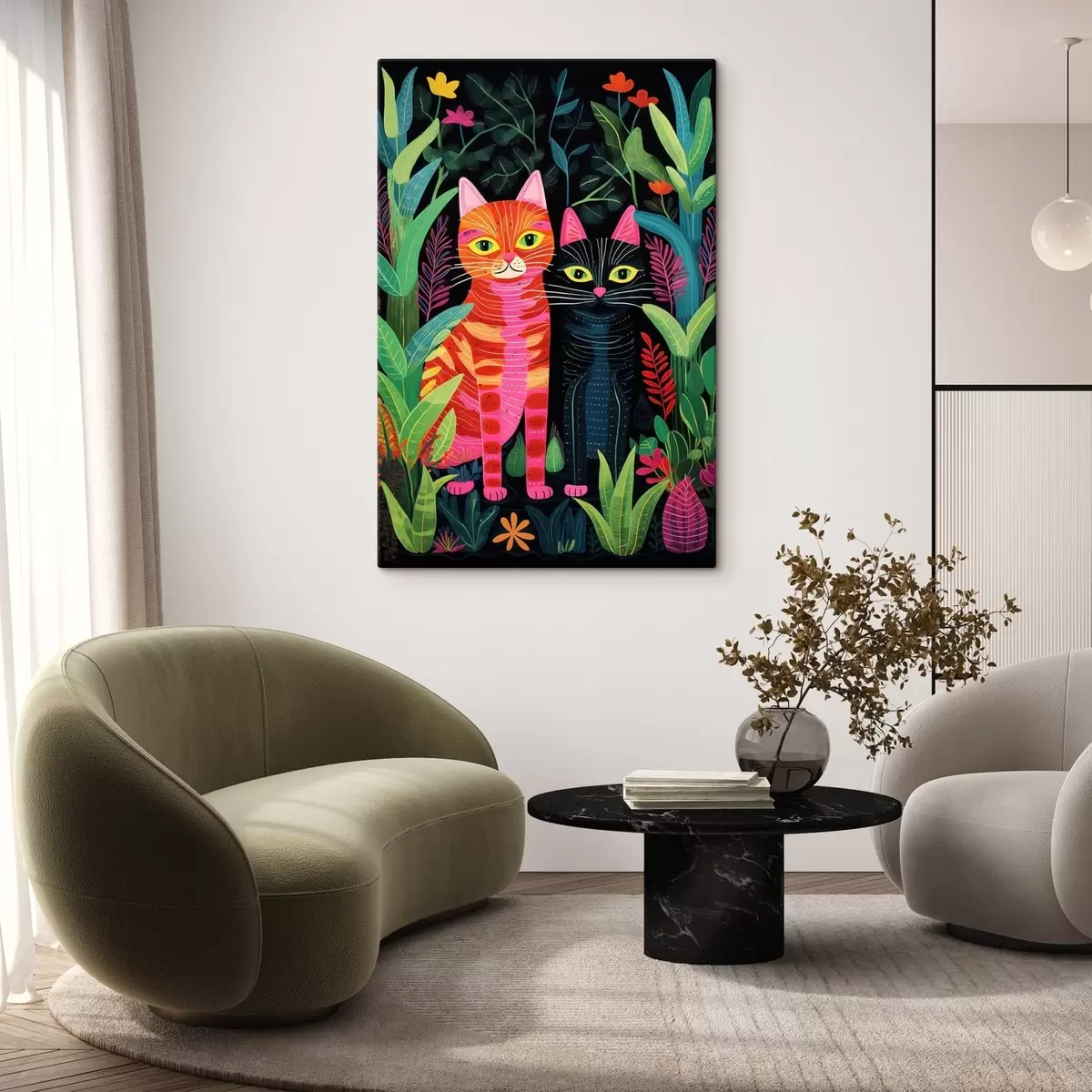 Obraz Dve štýlové mačky medzi živými rastlinami Nr. s47298