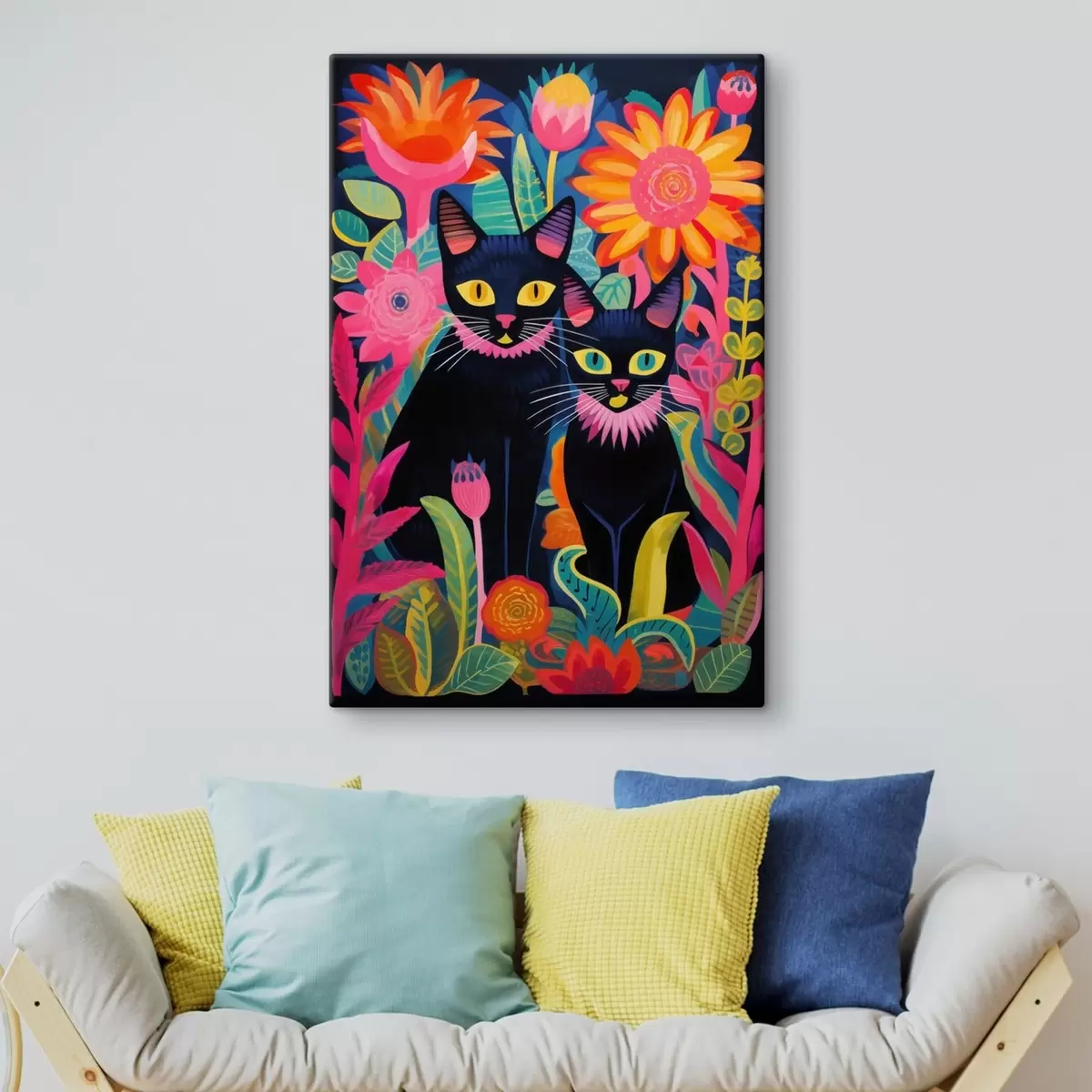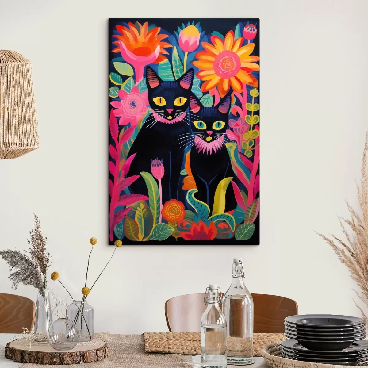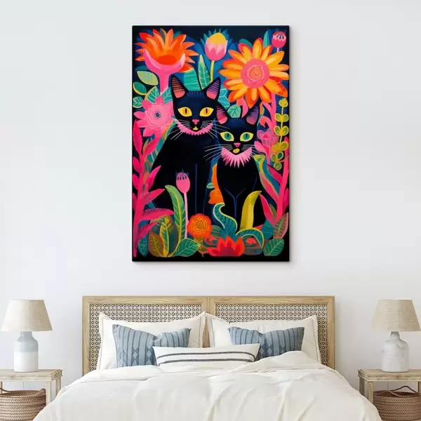 Obraz Dve čierne mačky medzi jasnými kvetmi Nr. s47299
