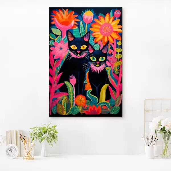 Obraz Dve čierne mačky medzi jasnými kvetmi Nr. s47299