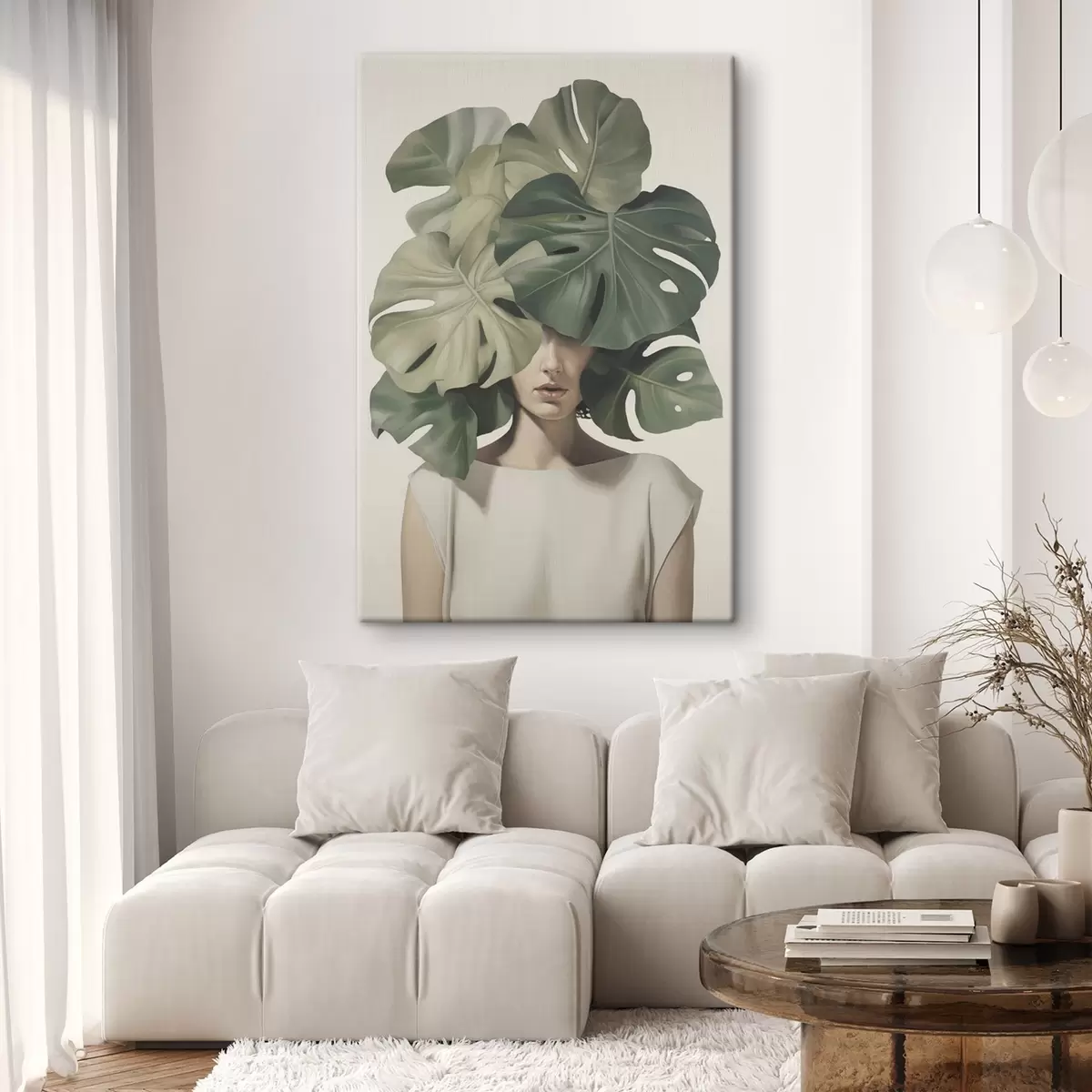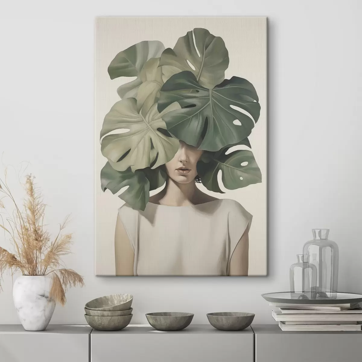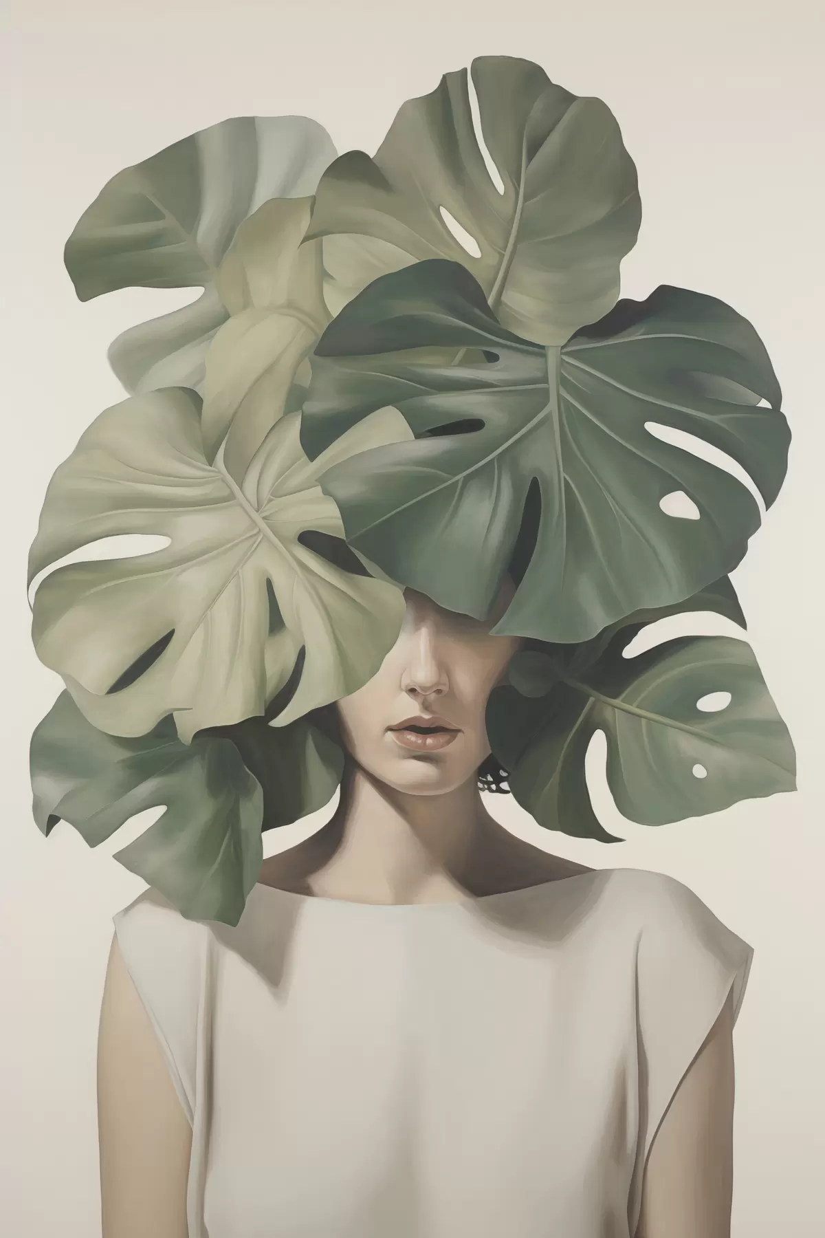 Obraz Abstraktný portrét dievčaťa s listami monstera Nr. s47336