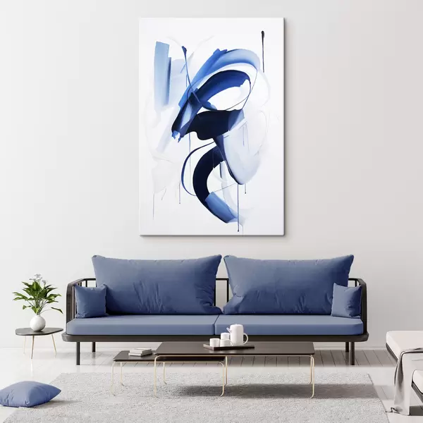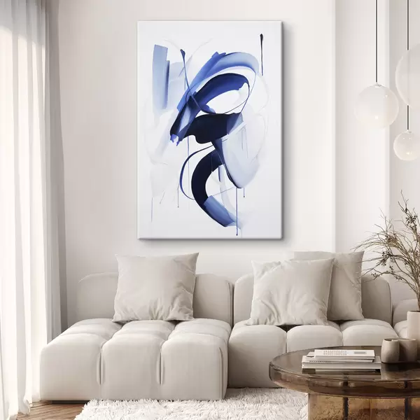 Obraz Abstraktné modré tvary pripomínajúce ťahy štetcom s plynulými líniami a krivkami na bielom pozadí, moderné umenie Nr. s47428