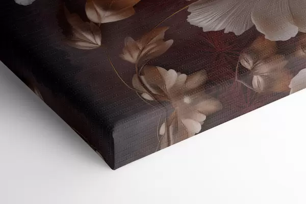 Obraz Jemné pivonky s tenkými, jemnými okvetnými lístkami, obklopené tmavočervenými a žltými listami na abstraktnom pozadí Nr. s47435