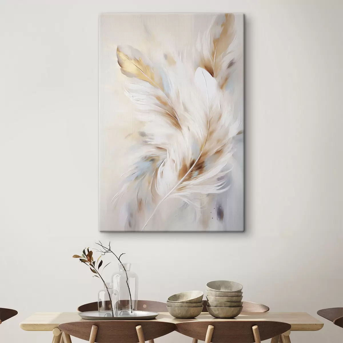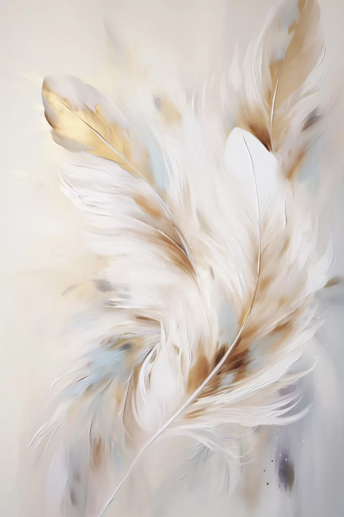 Obraz Veľké, mäkké perie s kombináciou bielych, žltých a hnedých odtieňov na svetlom, abstraktnom pozadí. Nr. s47442