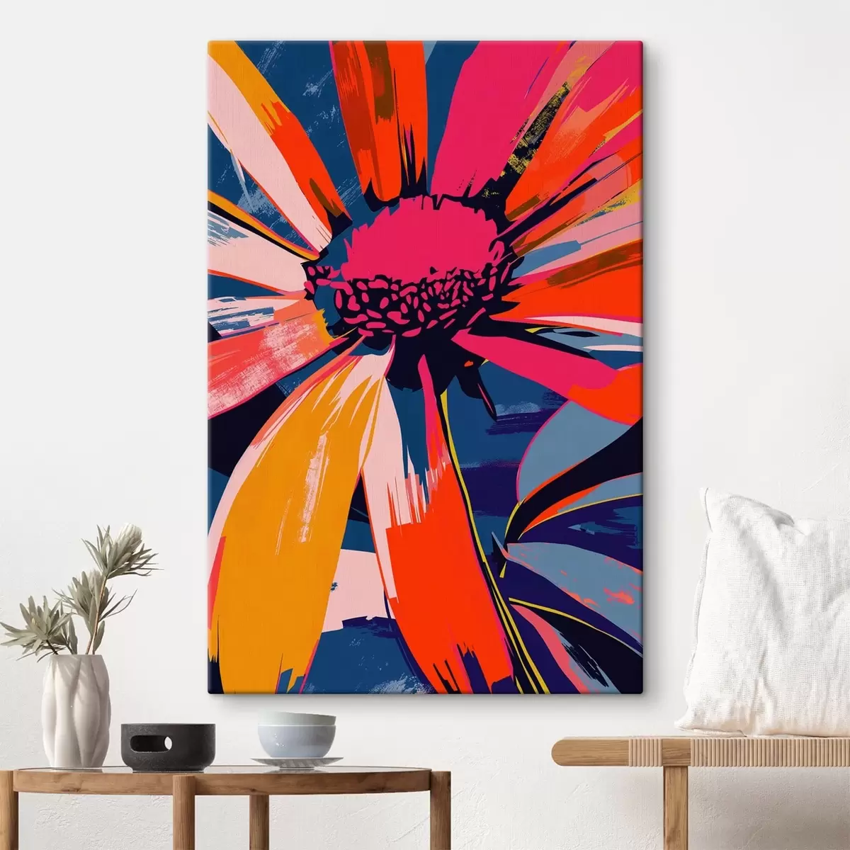 Obraz je možné zavesiť ihneď po jeho prevzatí. Obraz bude napnutý na drevených nosidlách so šírkou 2 cm.
