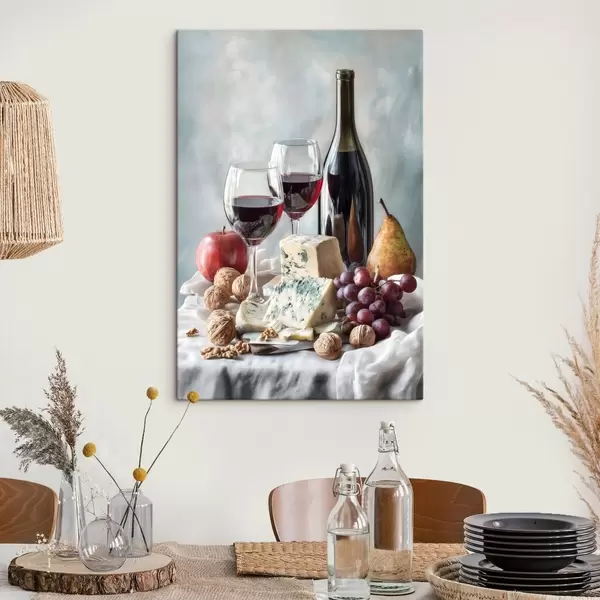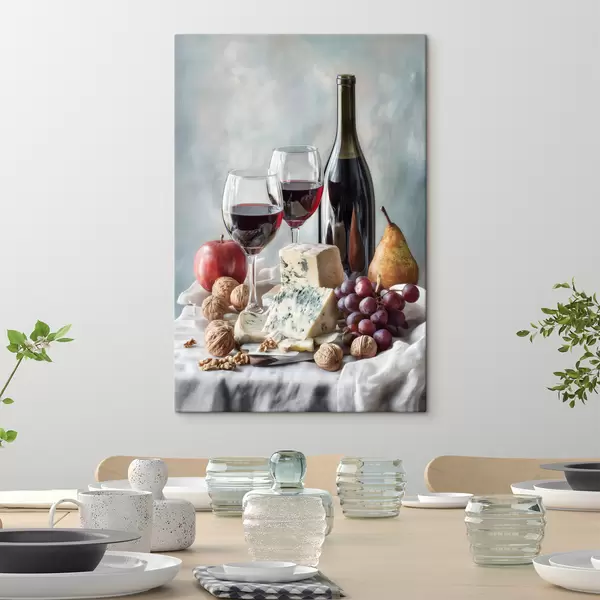 Obraz zátišie s vínom, syrom a orechmi Nr. s47686