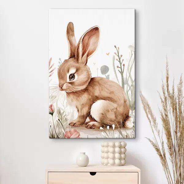 Obraz Roztomilý zajačik v kvetoch, efekt ceruzky Nr. s47741