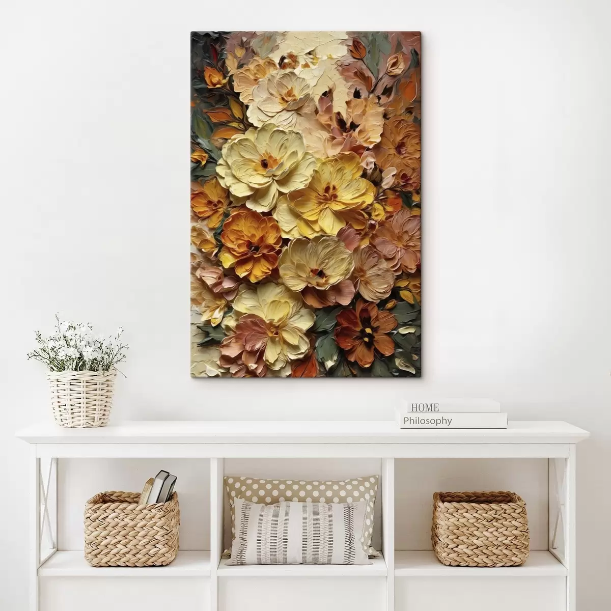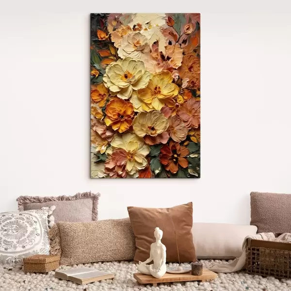 Obraz Bohatá kompozícia žiarivých kvetov v teplých odtieňoch Nr. s47760