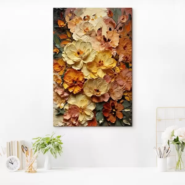 Obraz Bohatá kompozícia žiarivých kvetov v teplých odtieňoch Nr. s47760