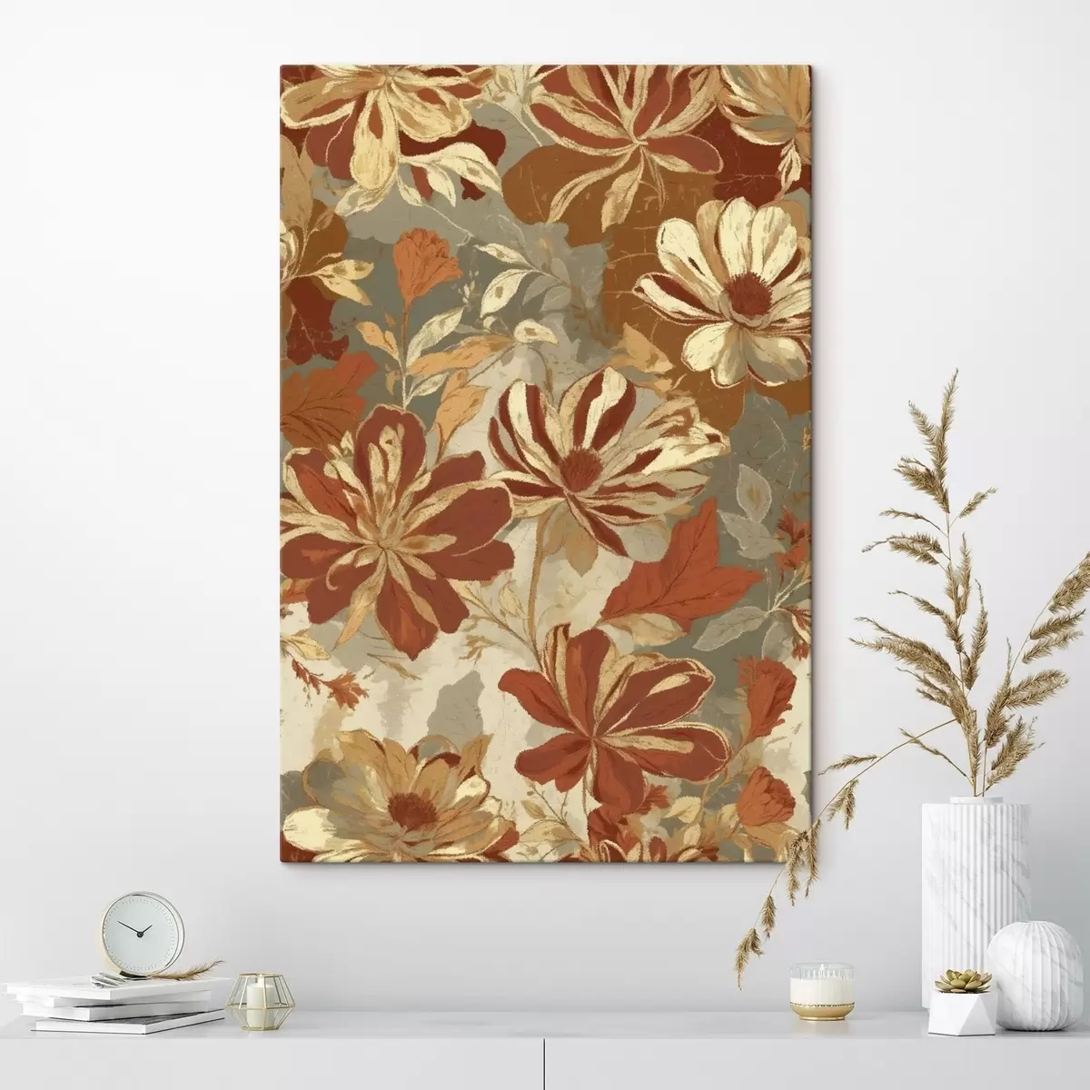 Obraz Kvetinový vzor v teplých odtieňoch hrdzavej a smotanovej farby Nr. s47770