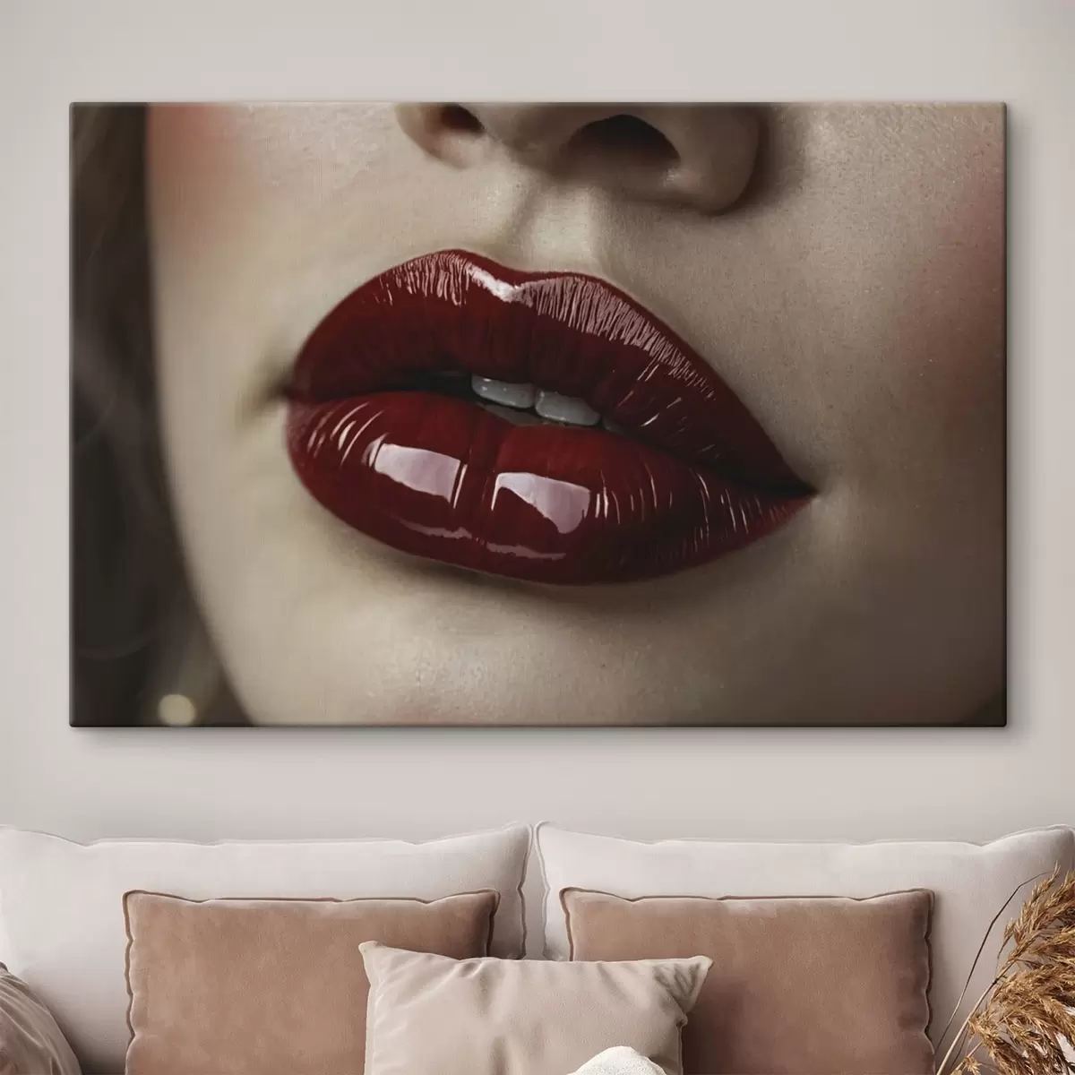 Obraz Veľmi detailný pohľad na lesklé červené pery Nr. s47772