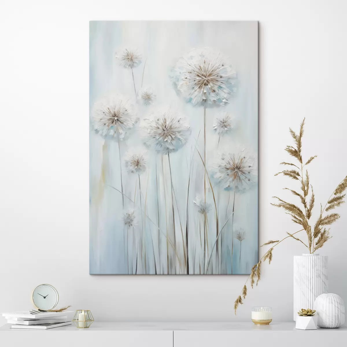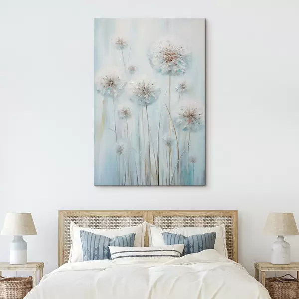 Obraz Textúrovaný štýl maľby púpav na jemnom modrom a bielom pozadí Nr. s47856