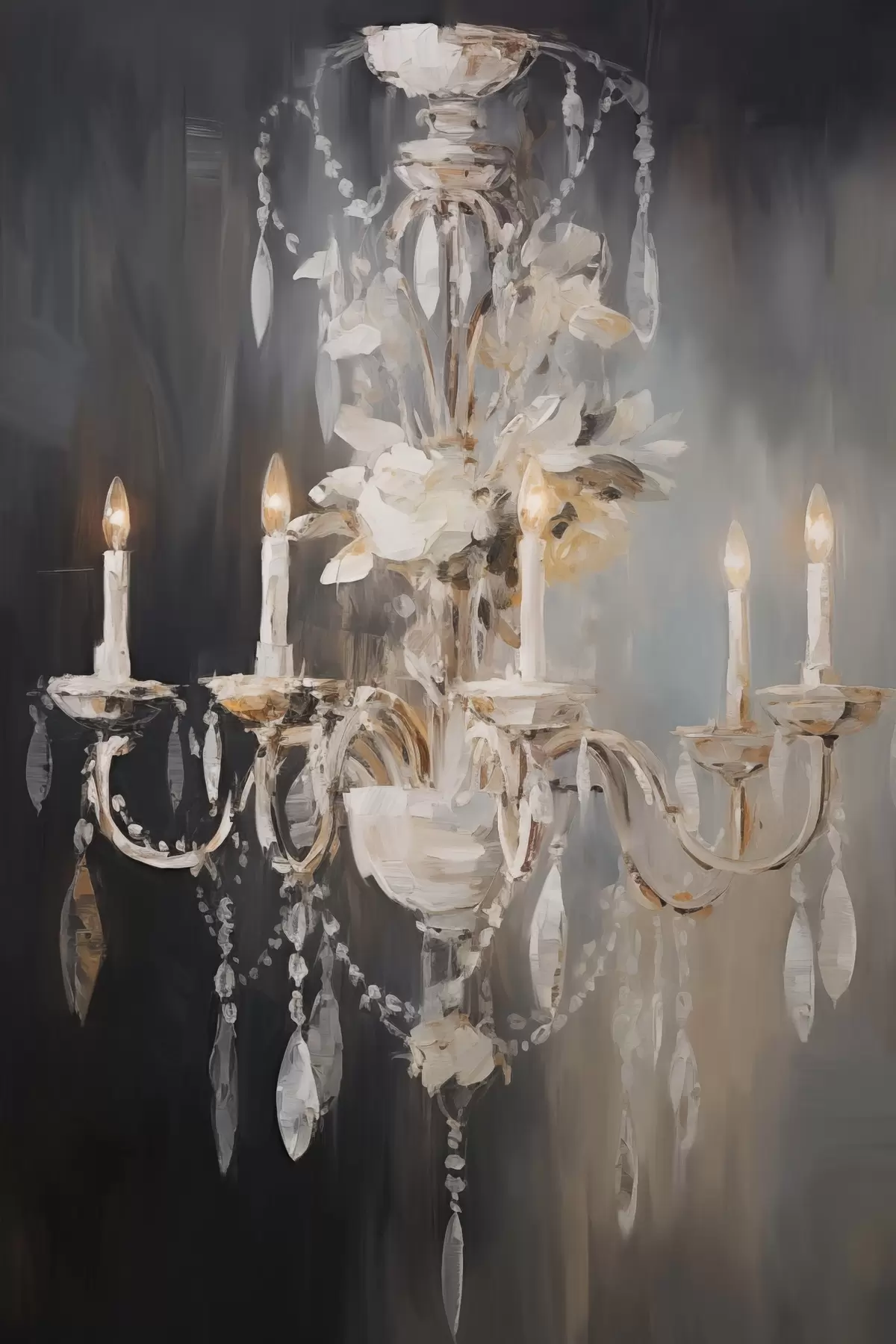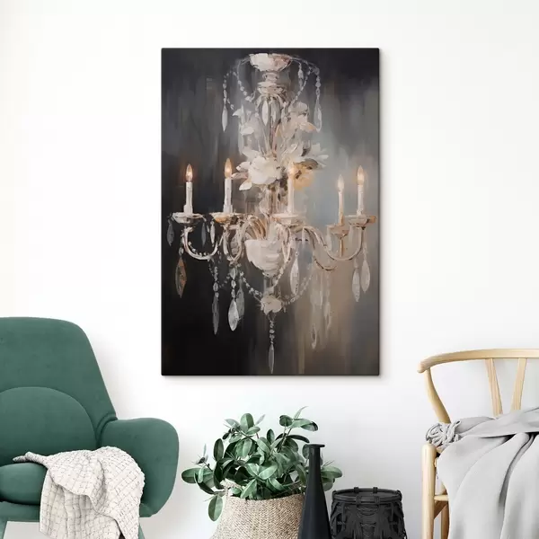 Obraz Abstraktný zdobený luster so zapálenými sviečkami a kvetinovými akcentmi na tmavom textúrovanom pozadí Nr. s47857