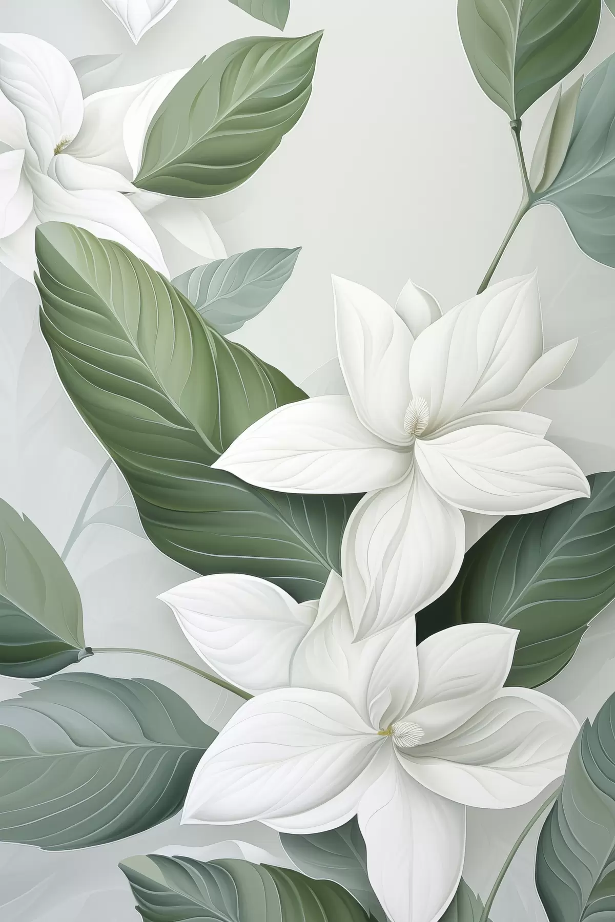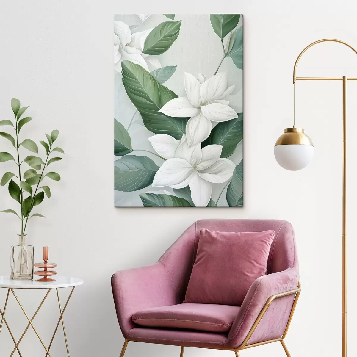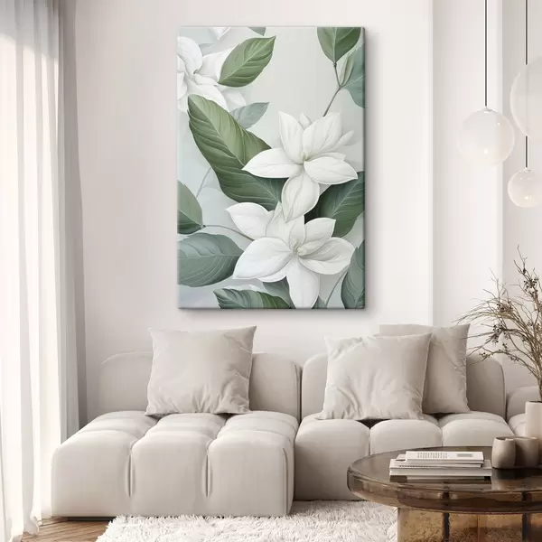 Obraz Biele kvety so zelenými listami, pastelové pozadie Nr. s47869