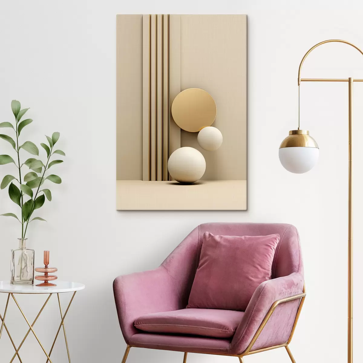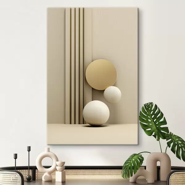 Obraz Abstraktné béžové moderné umenie s vertikálnymi čiarami a guľami Nr. s47871