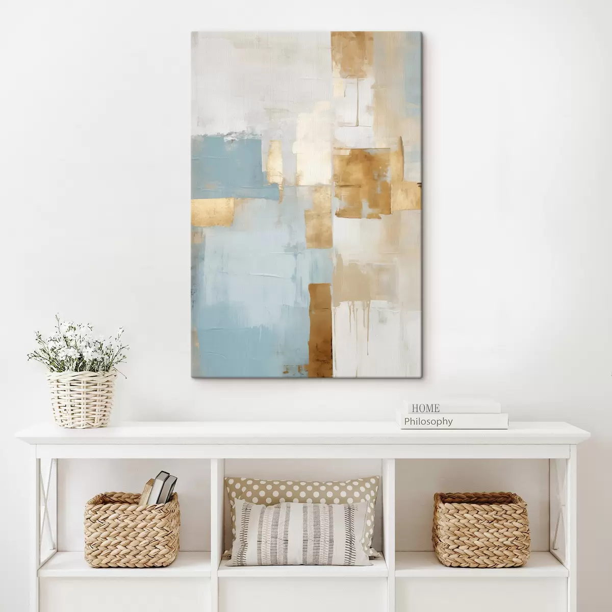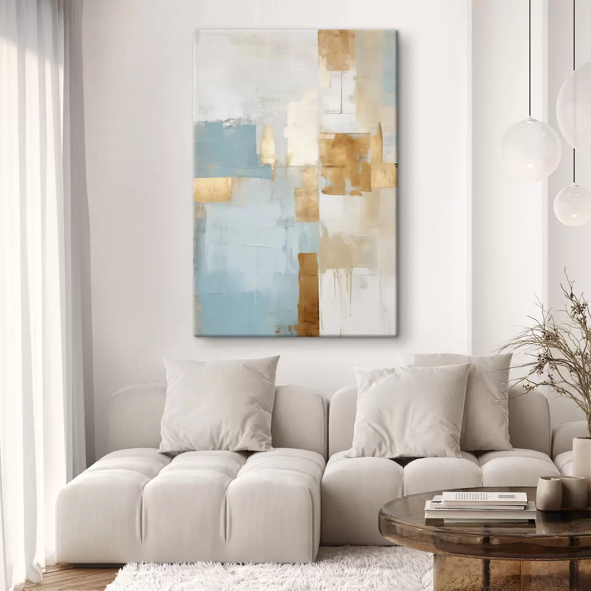 Obraz Abstraktné geometrické tvary v žltých, modrých a bielych farbách, textúrovaná a minimalistická kompozícia Nr. s47882