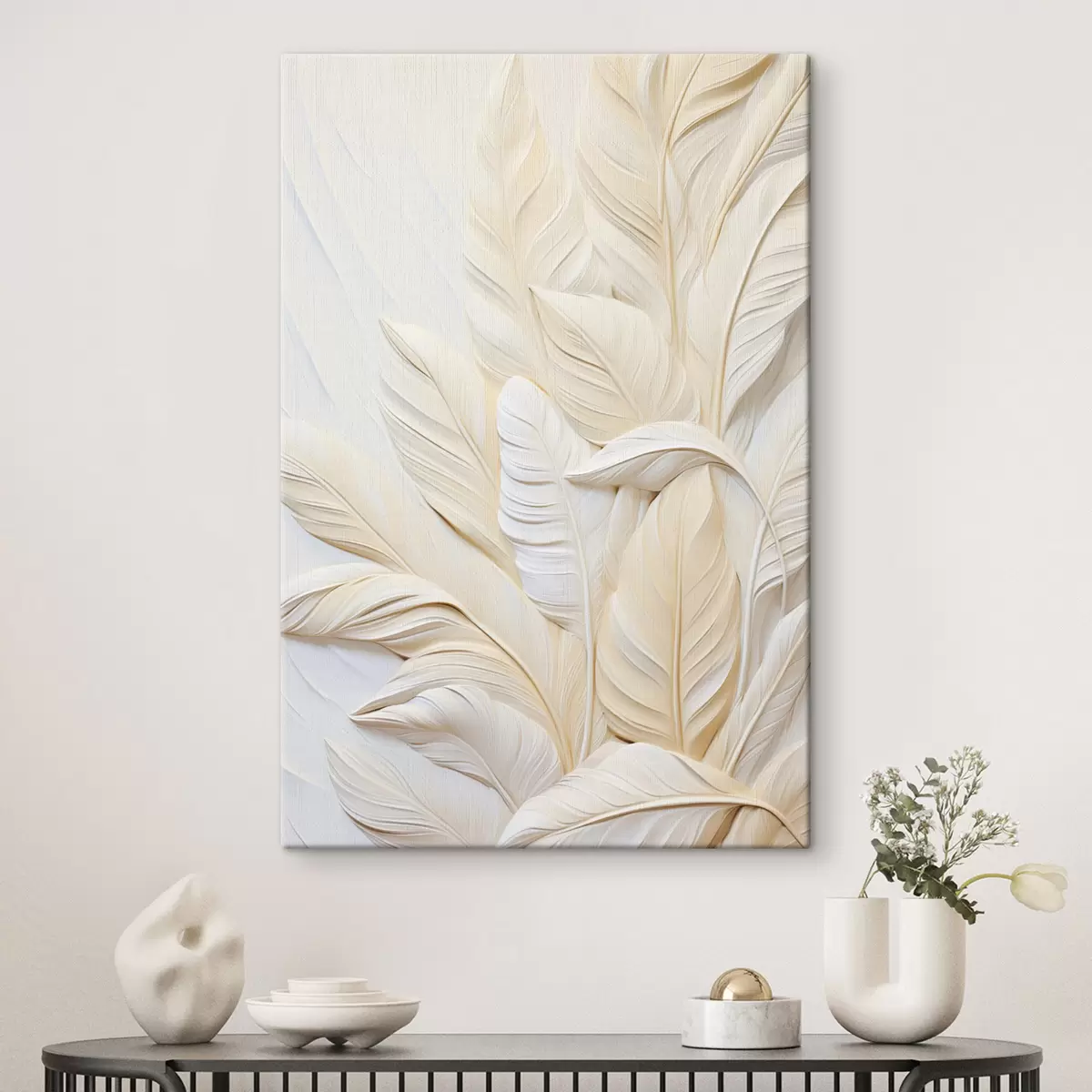 Obraz Krémové perie prekrývajúce sa navzájom, s jemným, svetlým pozadím Nr. s47883
