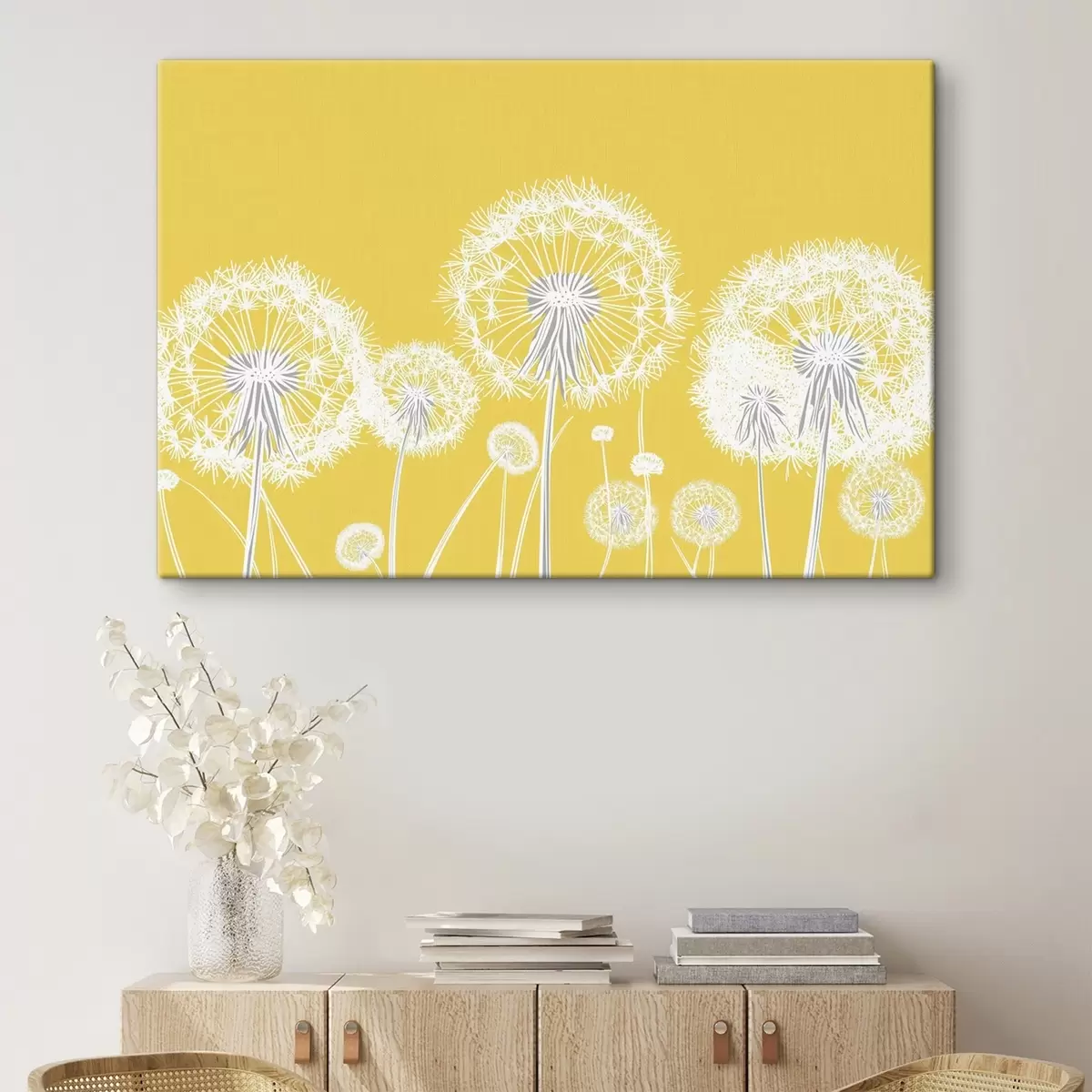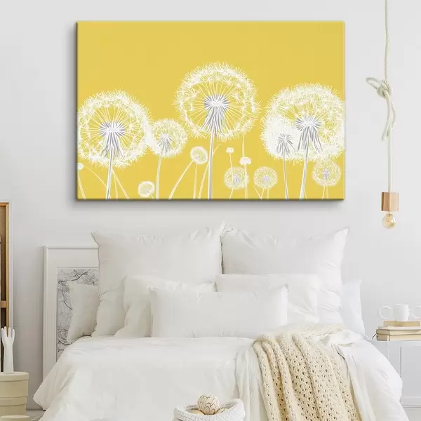 Obraz Biele púpavy na žltom pozadí Nr. s47890