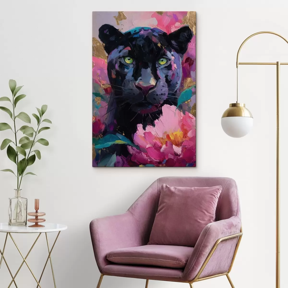 Obraz čierna pantera medzi pivóniami Nr. s47935
