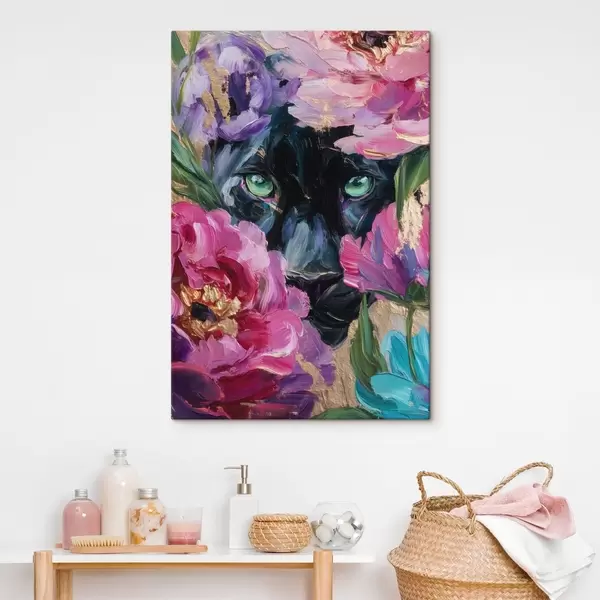 Obraz čierna pantera vykúka spomedzi pivoniek Nr. s47936
