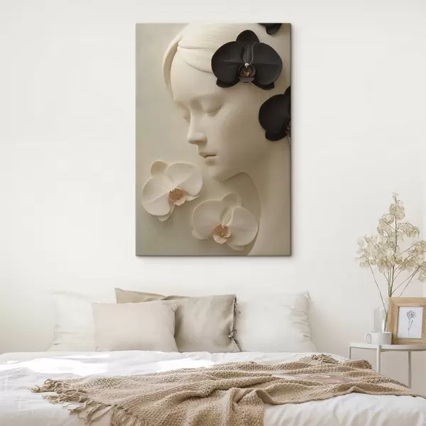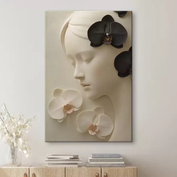 Obraz dievča s orchideami v basreliéfnom štýle Nr. s47942