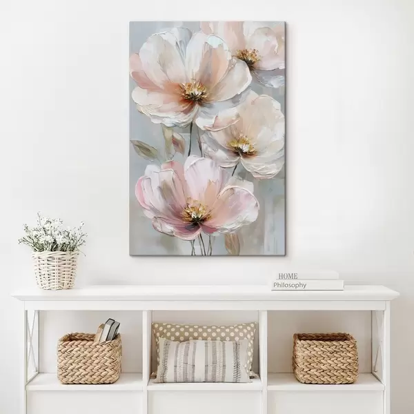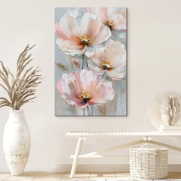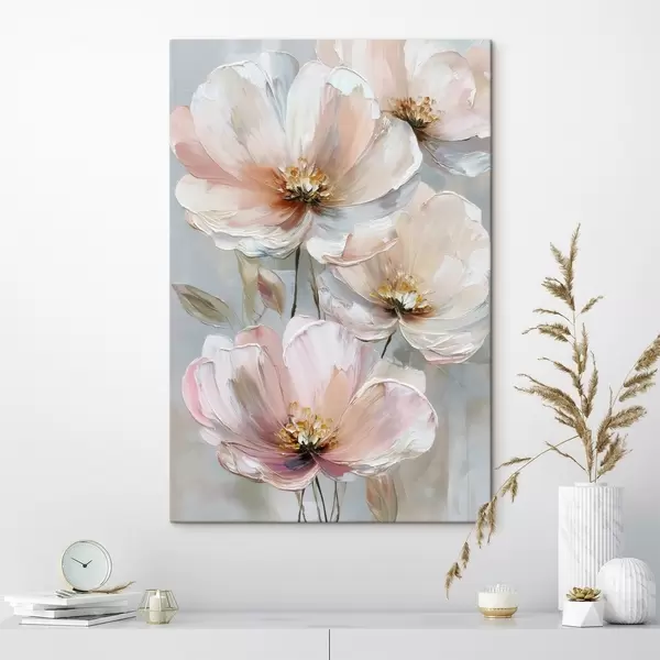Obraz Bielo-ružové kvety s výraznými ťahmi štetcom v štýle olejomaľby Nr. s47962