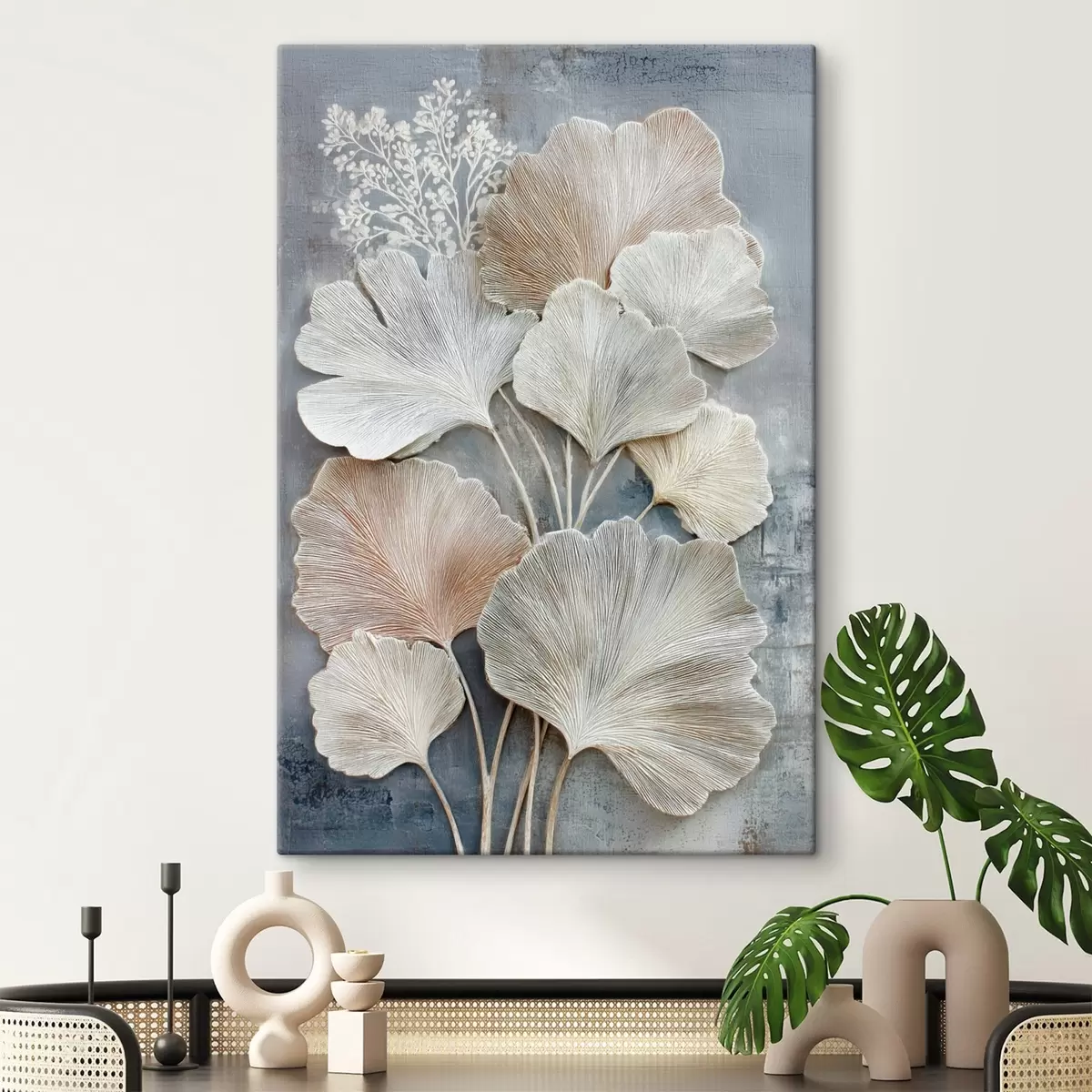 Obraz Abstraktná kvetinová kompozícia v béžovo-modrej farebnej palete Nr. s47963