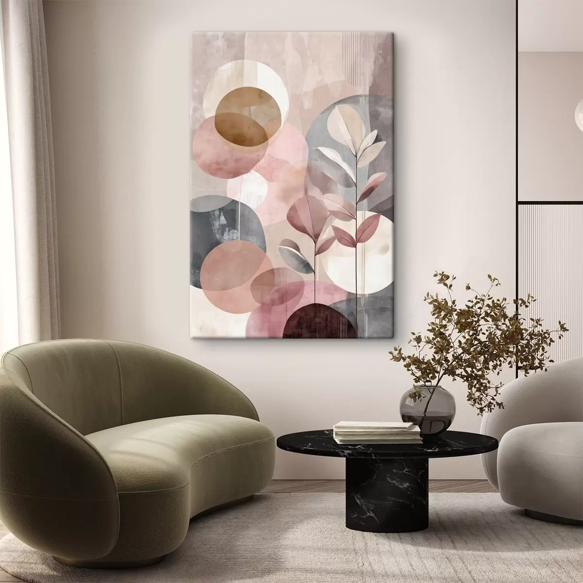 Obraz Abstraktná kompozícia s kruhmi v terakotovo-ružovej farebnej palete Nr. s47977
