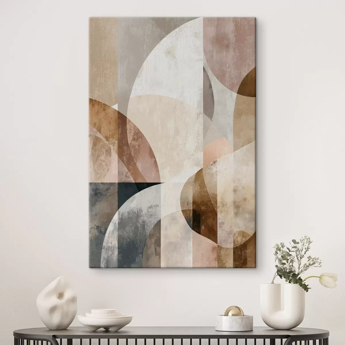 Obraz Moderná kompozícia s kruhovými tvarmi a vertikálnymi ťahmi Nr. s47980