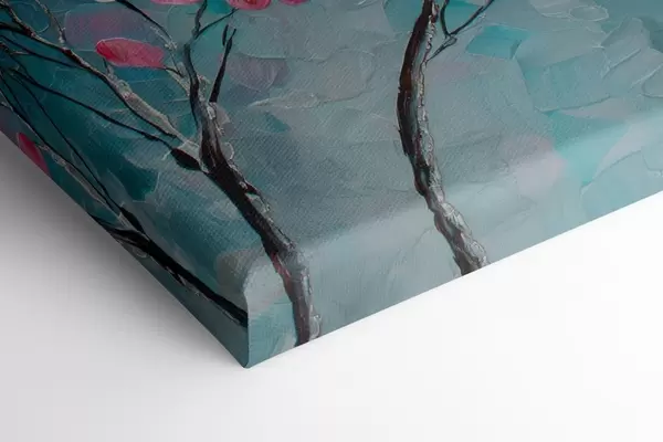 Obraz Vetva s ružovými kvetmi na modrom pozadí v štýle olejomaľby Nr. s47987