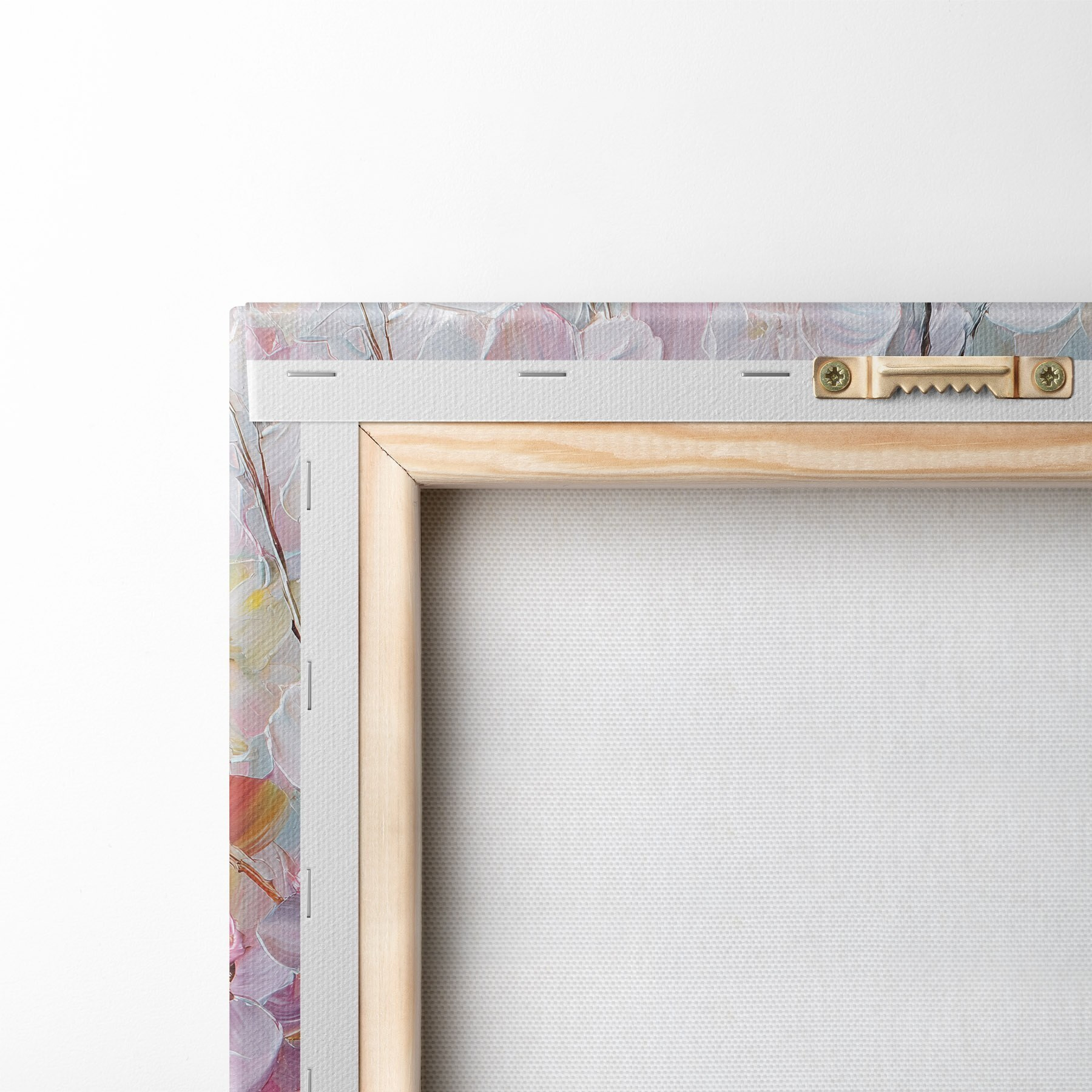 Obraz môžete zavesiť na skrutky. Na tento účel k našim obrazom prikladáme úchytky, ktoré vám umožnia obraz pohodlne zavesiť.