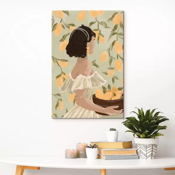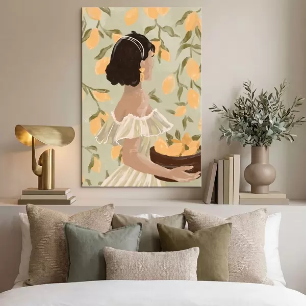 Obraz Žena držiaca misku s citrónmi za stonky Nr. s48023