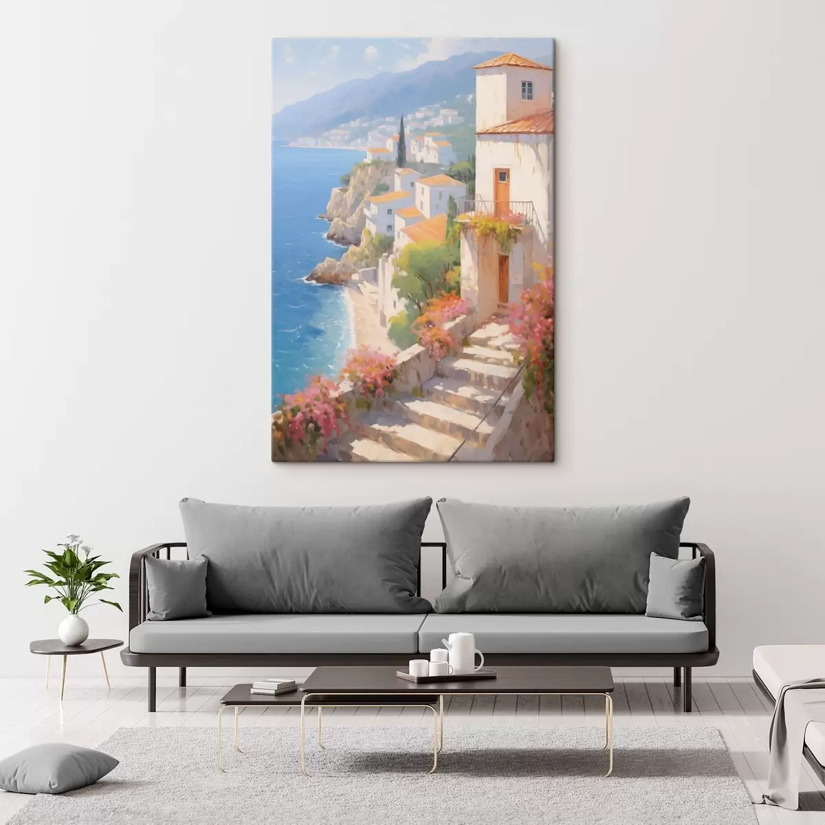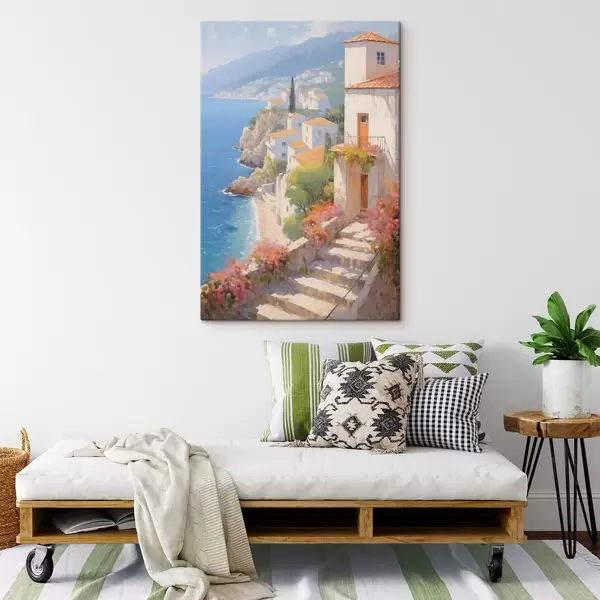 Obraz impresionistická stredomorská dedinka na útesoch Nr. s48060