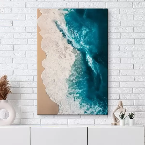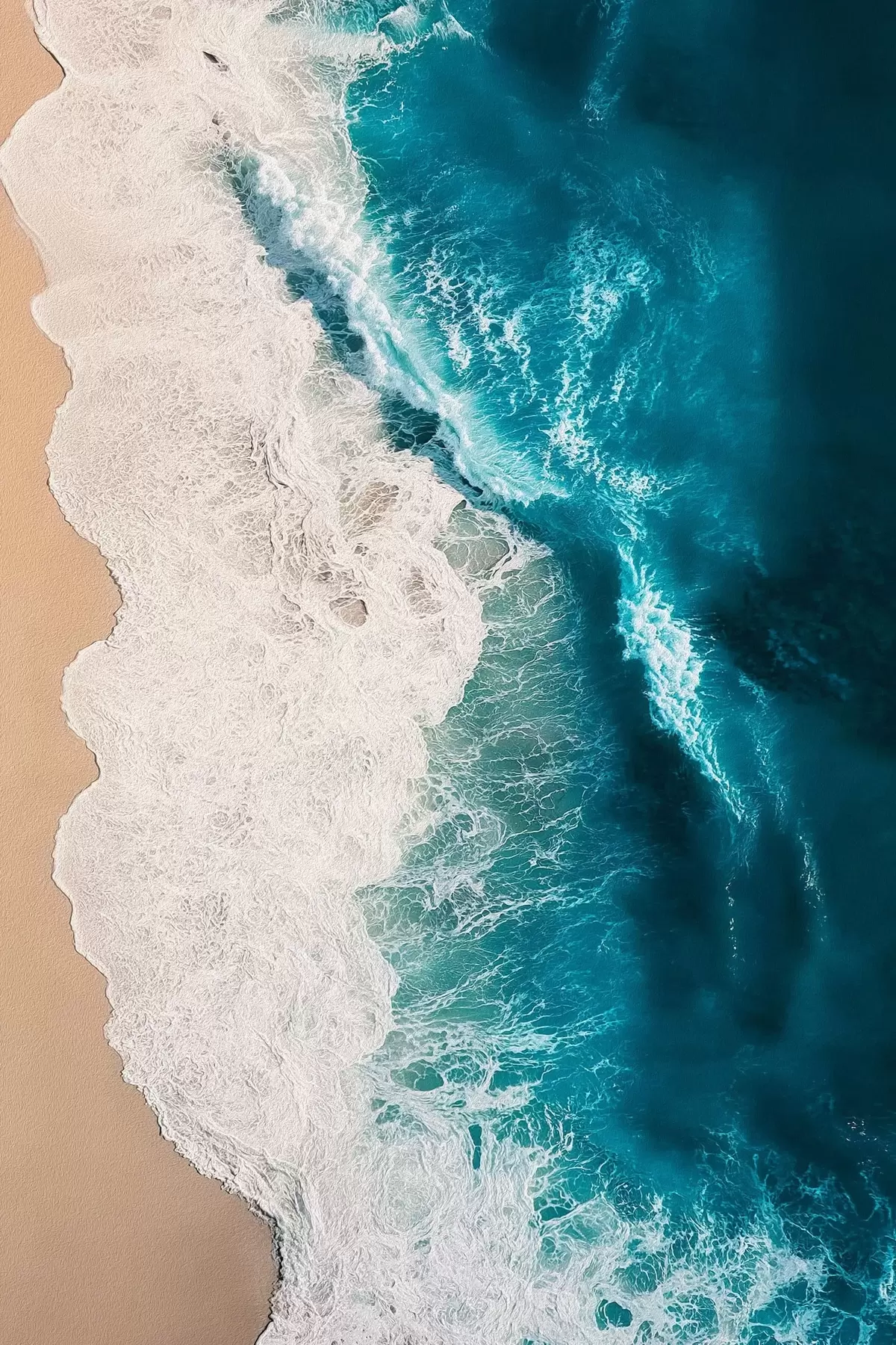 Obraz pohľad z vtáčej perspektívy na morské vlny narážajúce na pieskovú pláž Nr. s48062