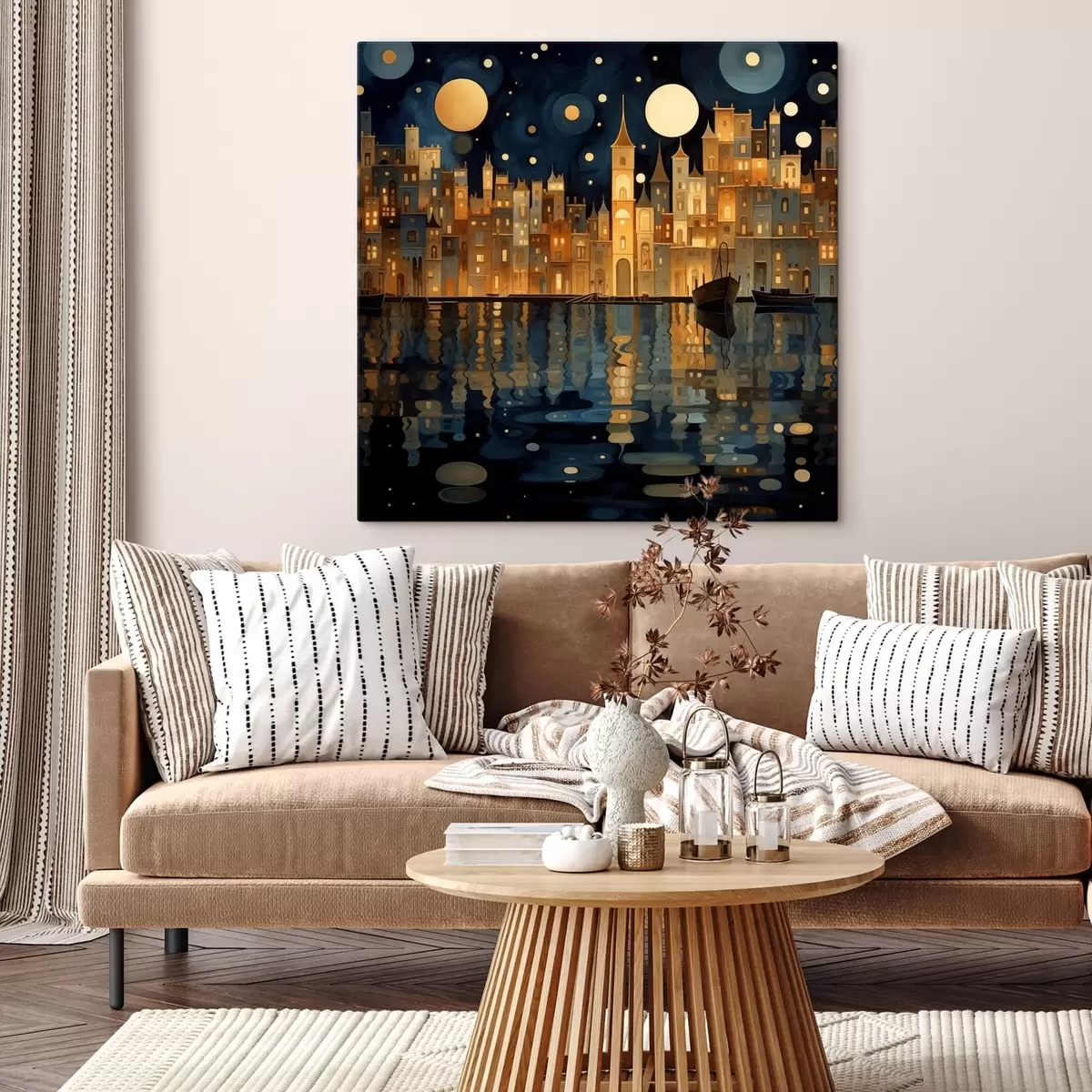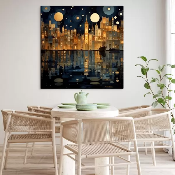 Obraz rozmarnej nočné mesto pri vode Nr. s48063
