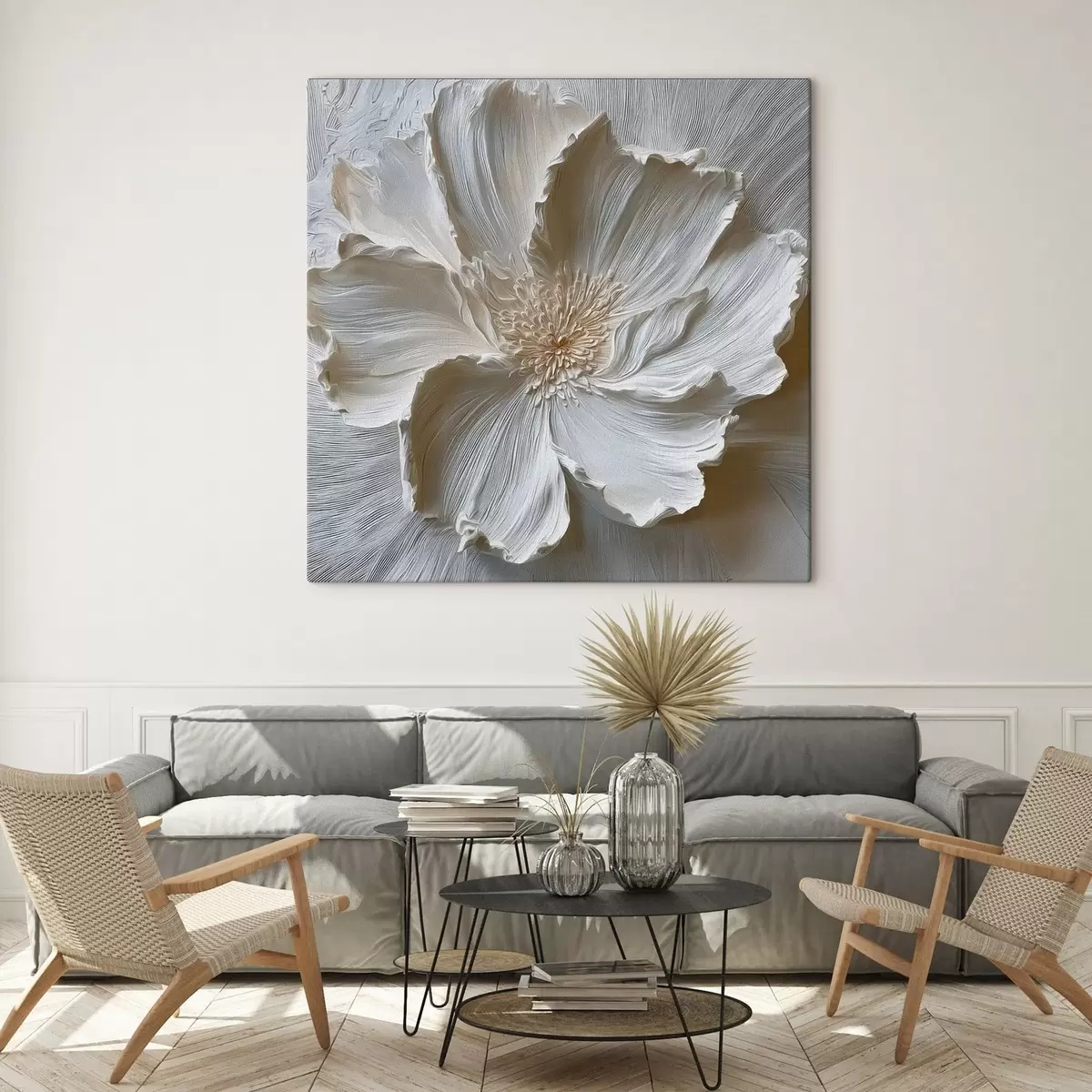 Obraz biela omietková reliéfna kvetinová socha Nr. s48064