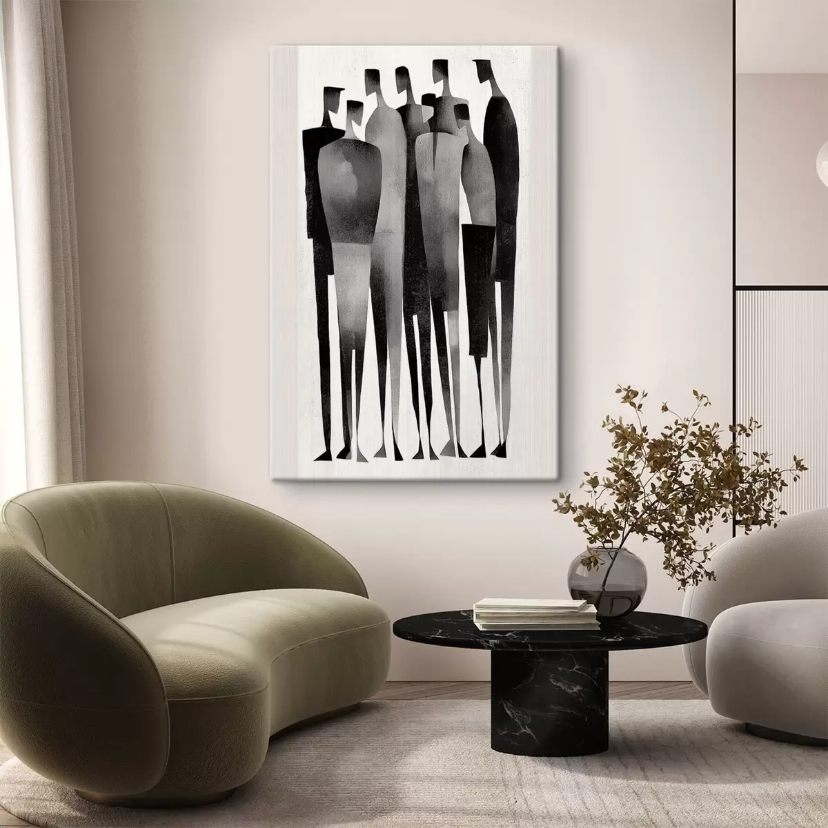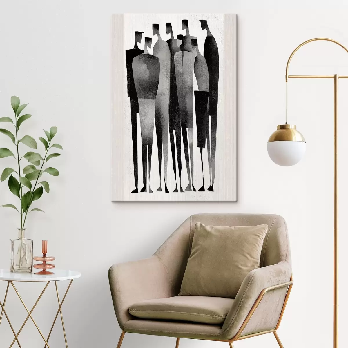 Obraz minimalistické pretiahnuté ľudské postavy stojace v rade Nr. s48069
