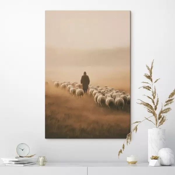 Obraz pastier kráčajúci s ovčím stádom na otvorenom poli Nr. s48077