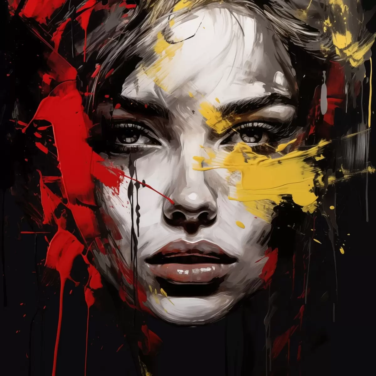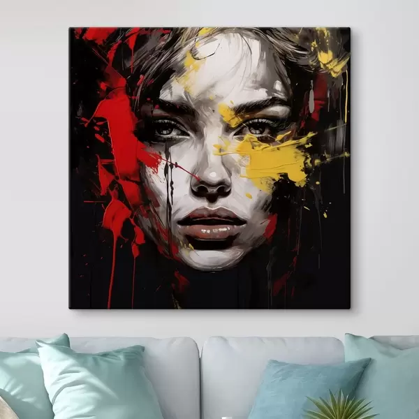 Obraz Portrét ženy s červenými a žltými ťahmi Nr. s48089