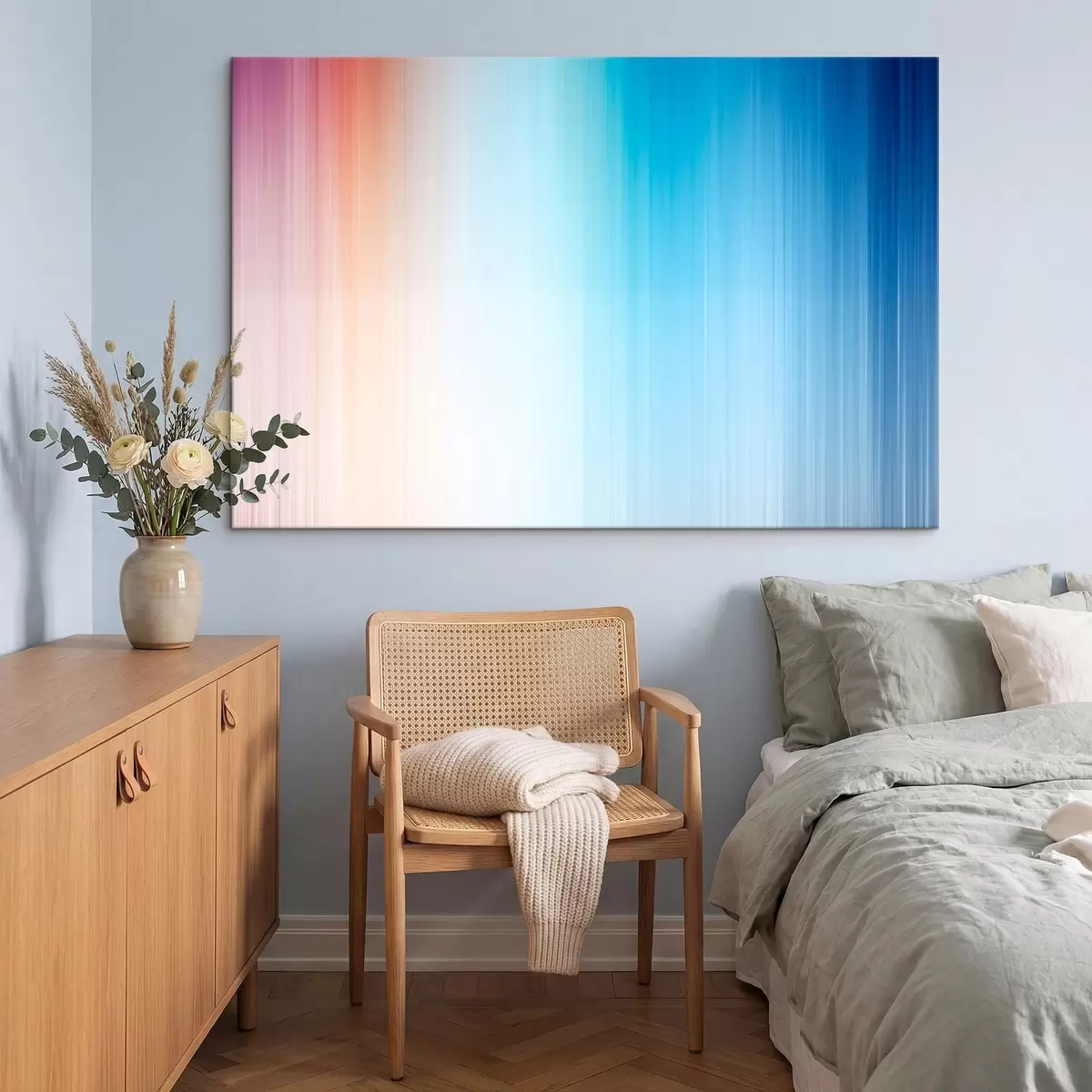Obraz je možné zavesiť ihneď po jeho prevzatí. Obraz bude napnutý na drevených nosidlách so šírkou 2 cm.