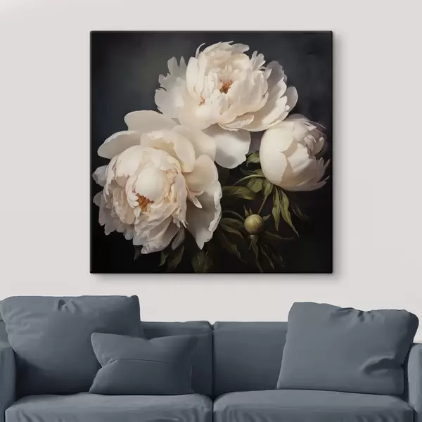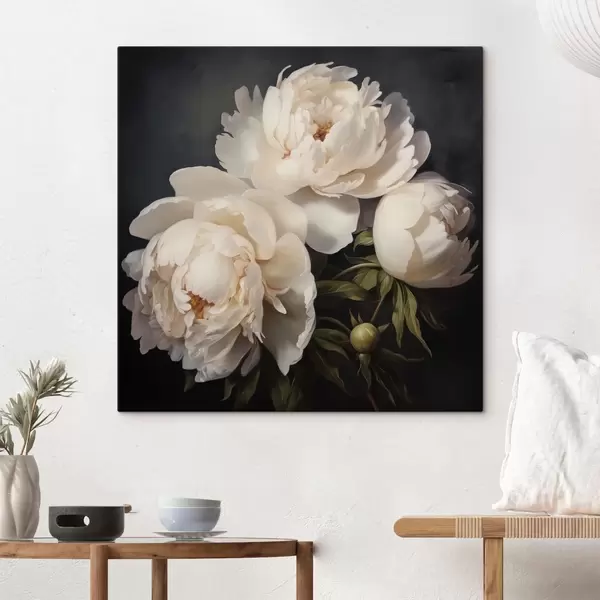 Obraz Biele pivonky na tmavom pozadí Nr. s48101